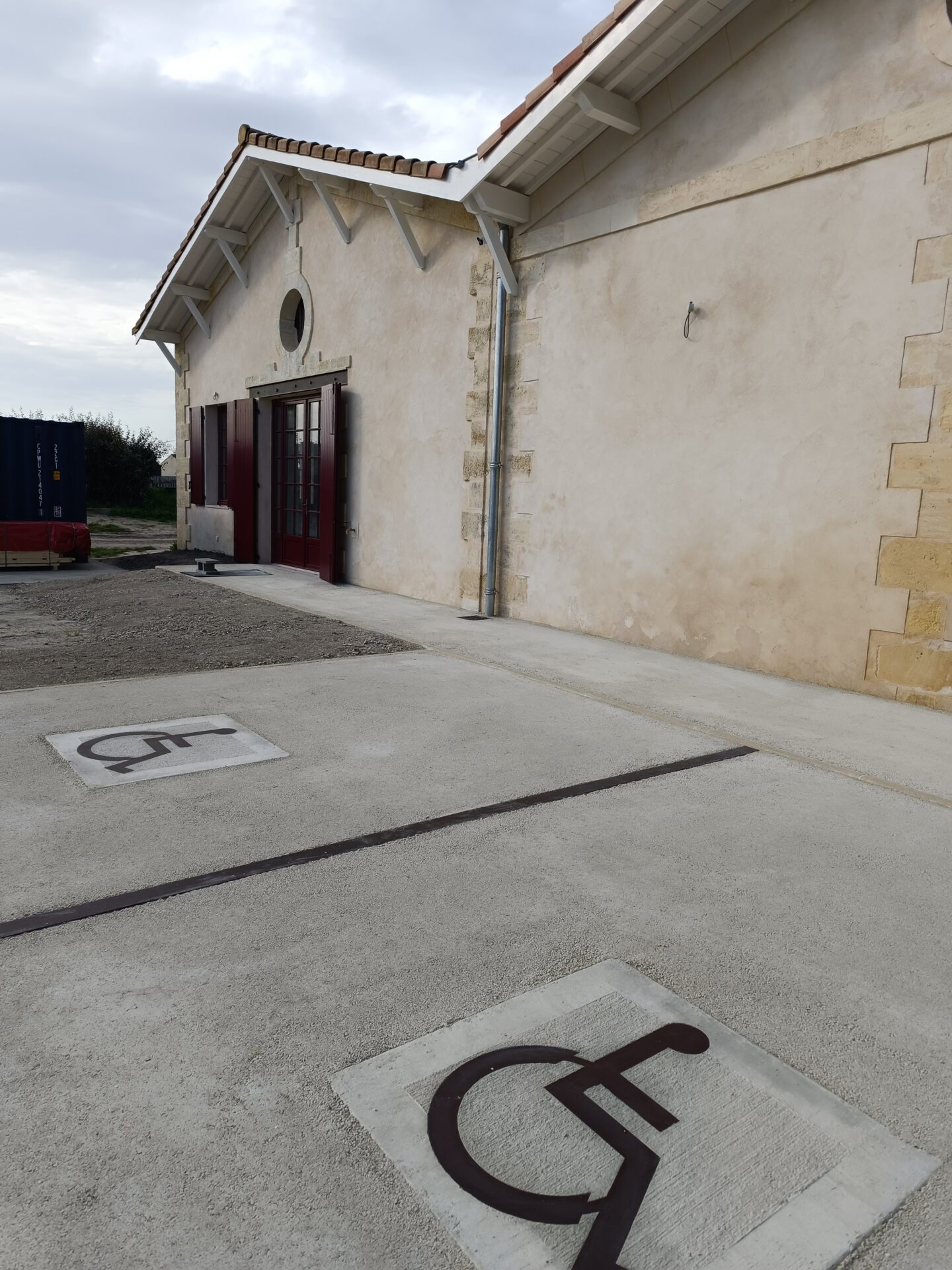 Un traitement paysager est intégré pour répondre à une mise en valeur du site, particulièrement dans l’espace d’accueil du public vers l’espace oenotouristique.
