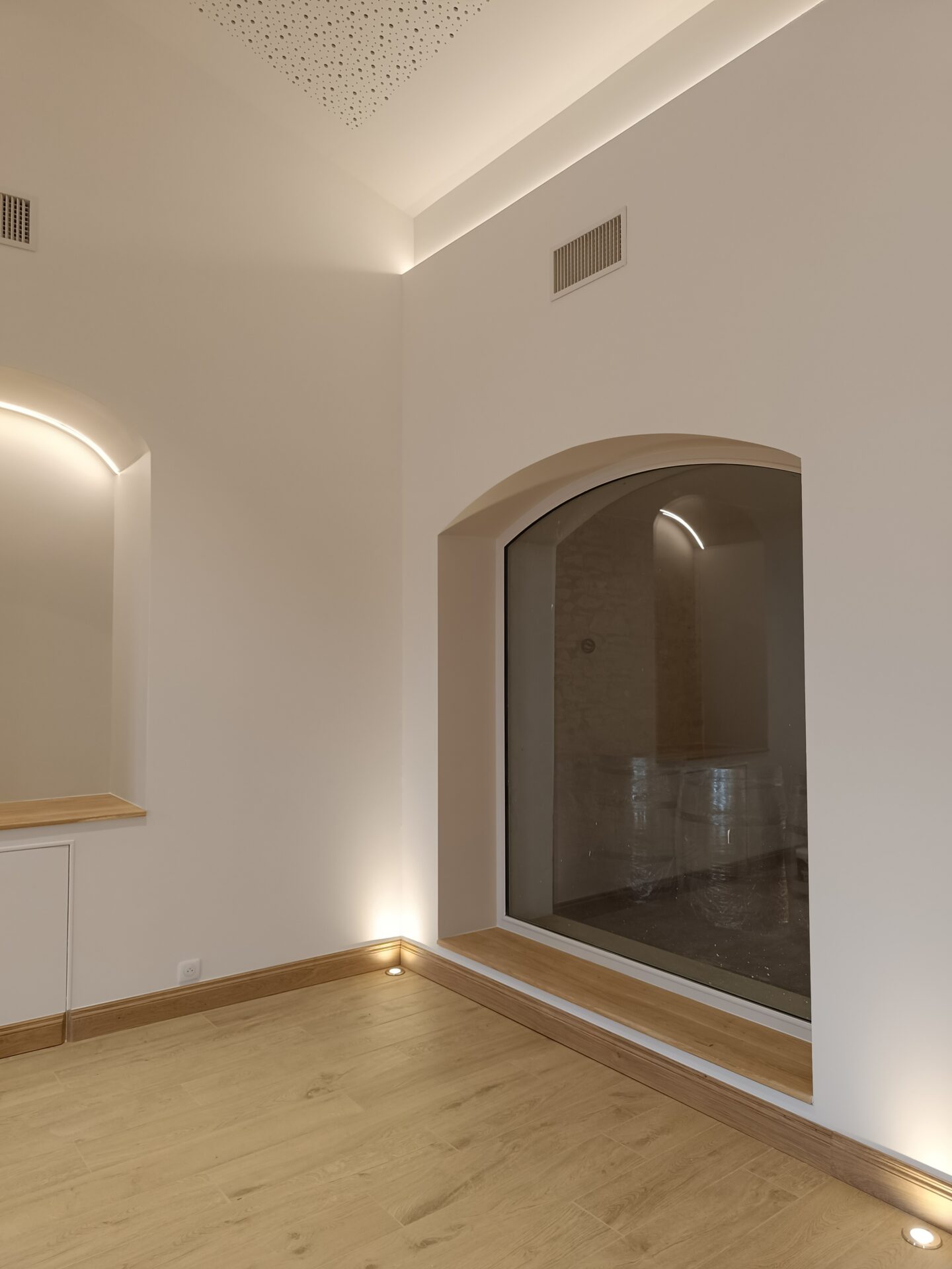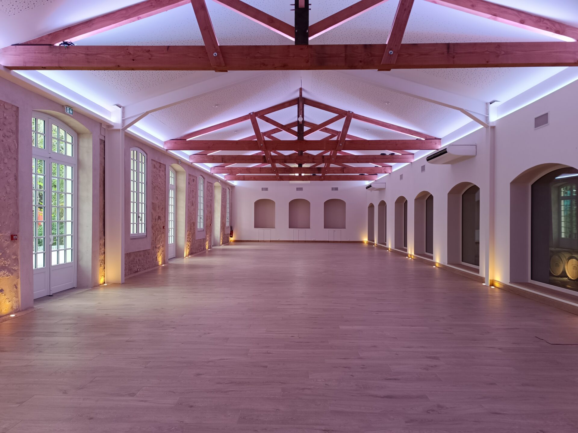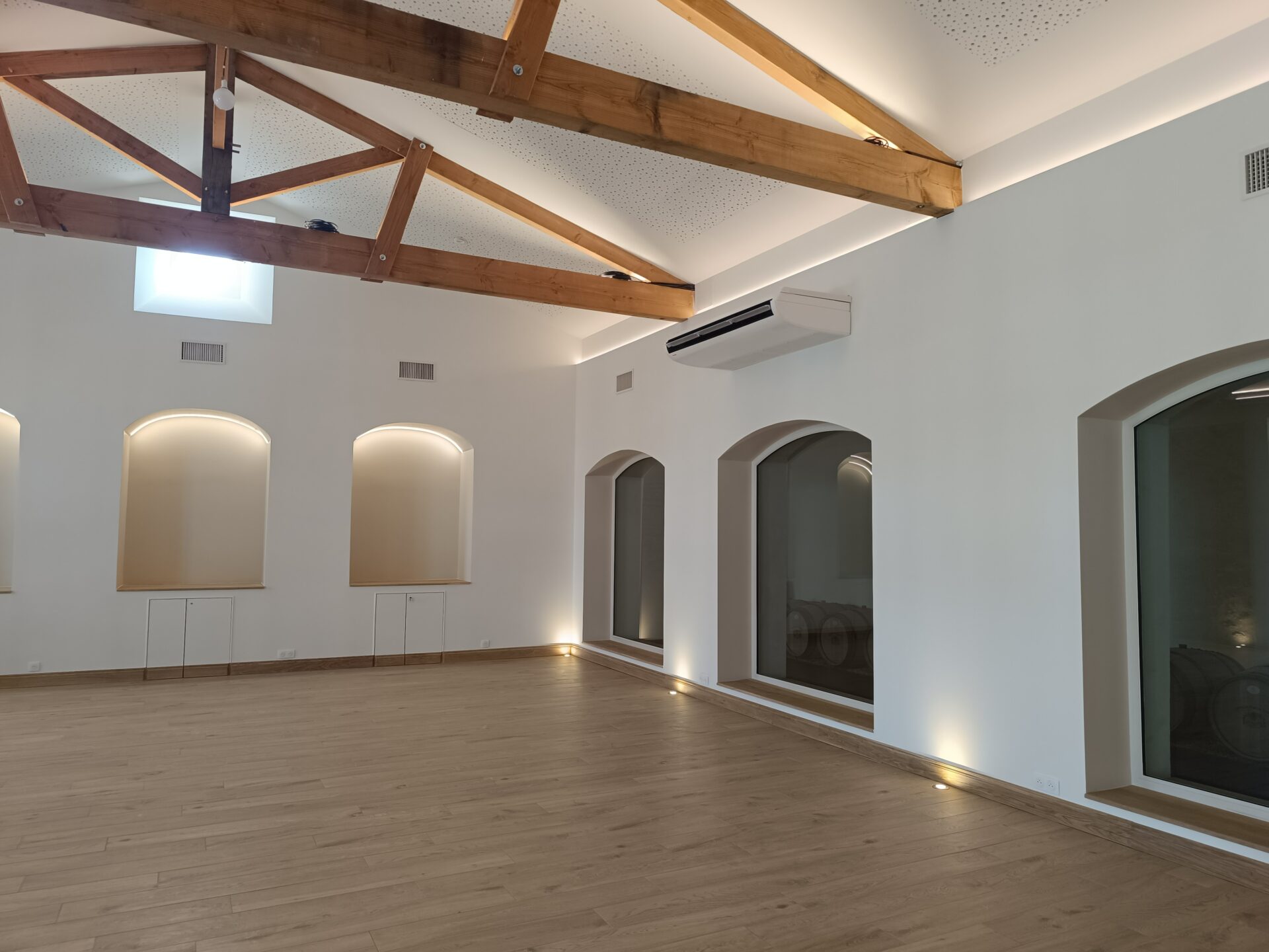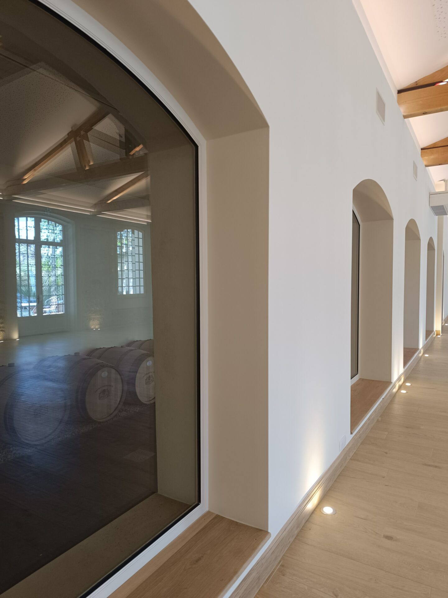 Descriptif : Aménagement d'un espace oenotouristique, réfection complète de la zone professionnelle de vinification, d’un chai d’exposition à barriques et 2 logements agricoles.
