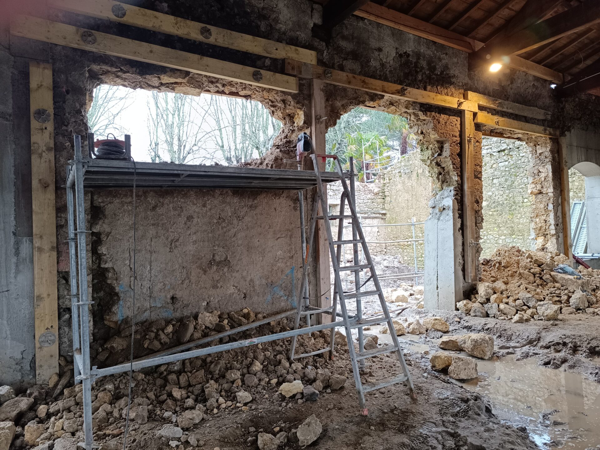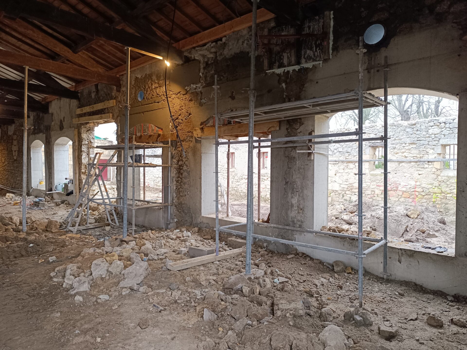 Les études étaient particulièrement centrées sur la technicité des mises en œuvre relative à la construction en pierre très dégradée des espaces et sur les aspects techniques nécessaires au bon fonctionnement futur de l’activité.