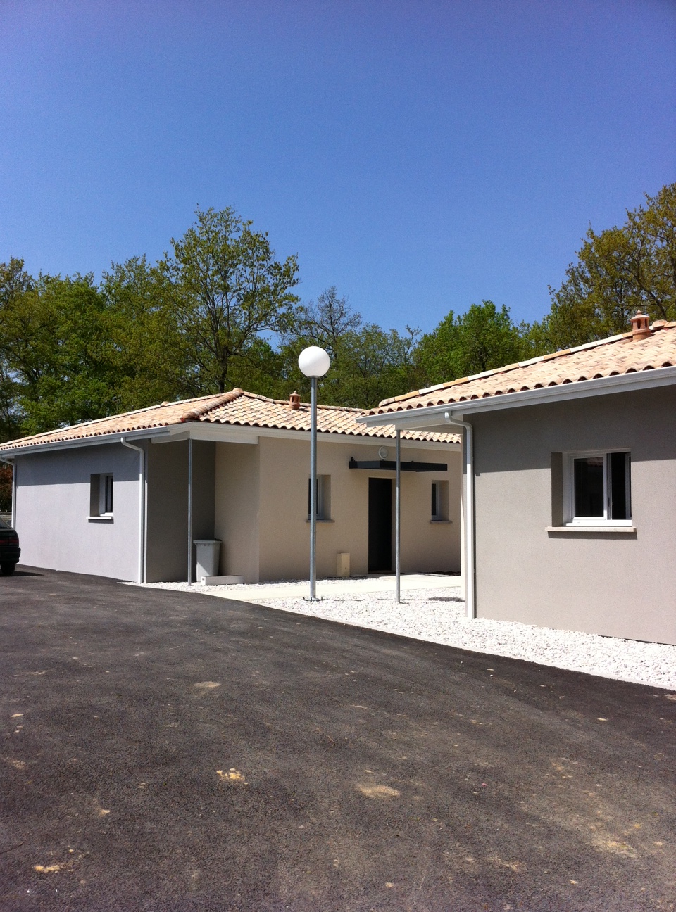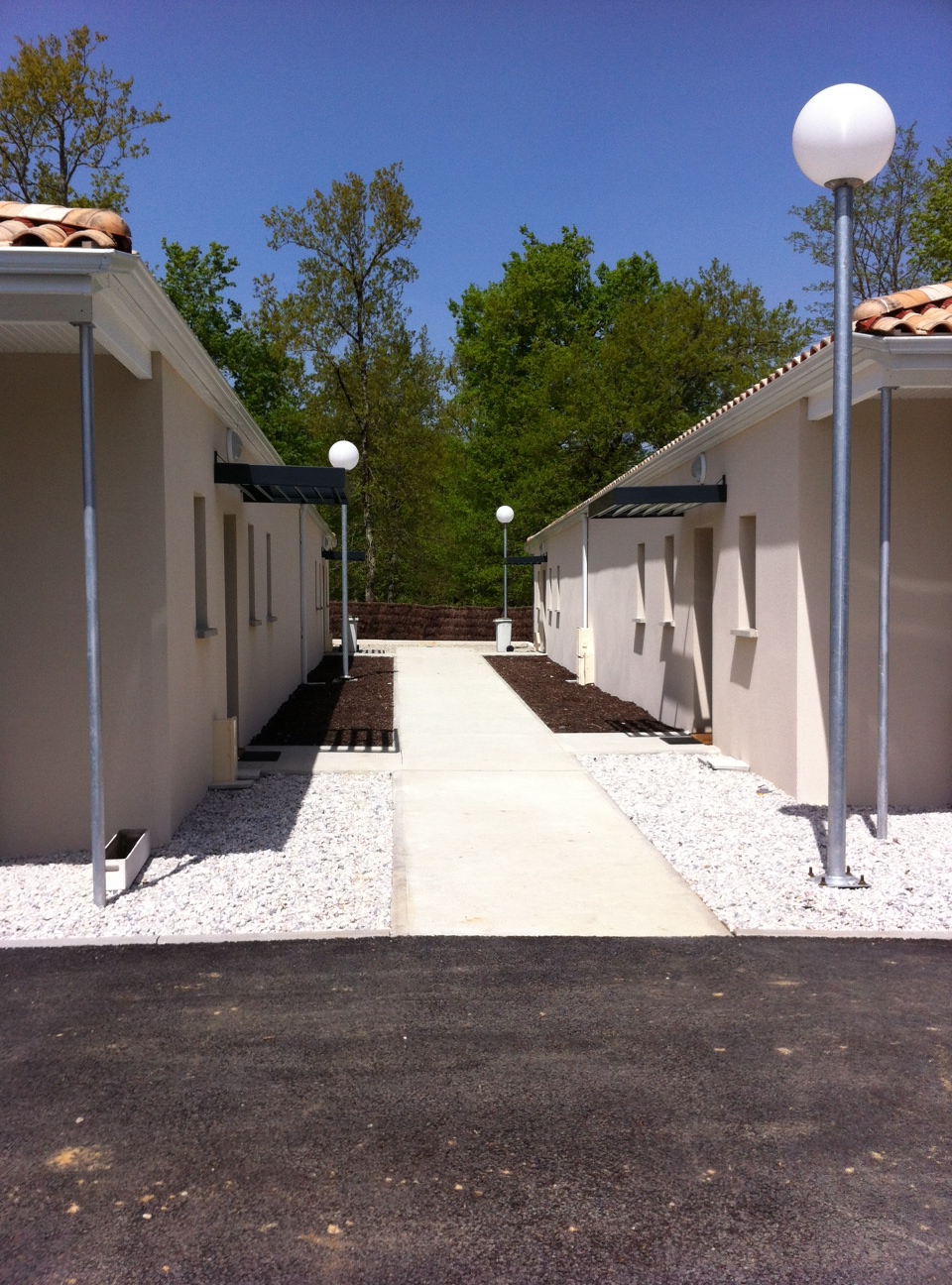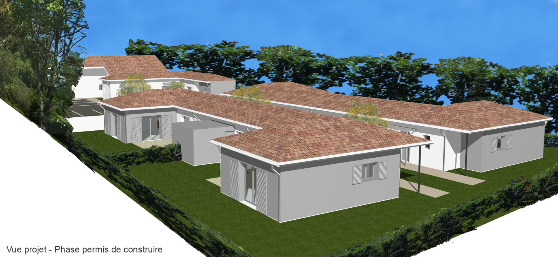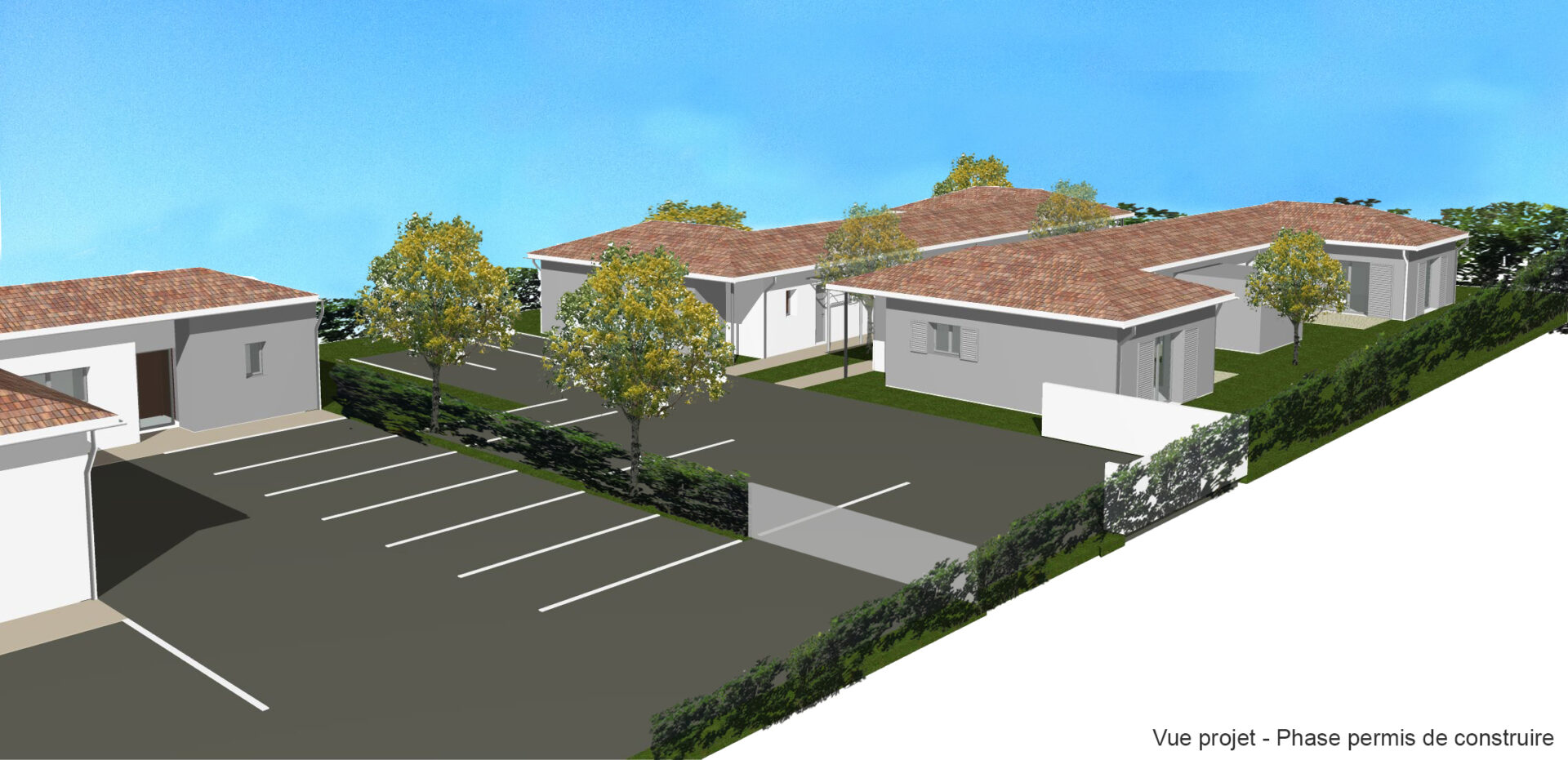 L’accès aux habitations a été traité avec un cheminement piéton commun qui dessert chacune d’elles. Les orientations ont pu être traitées par des ouvertures à l’Est et à l’Ouest sur les jardins privatifs et chaque maison bénéficie d’une ouverture en pignon pour bénéficier de 3 orientations.
