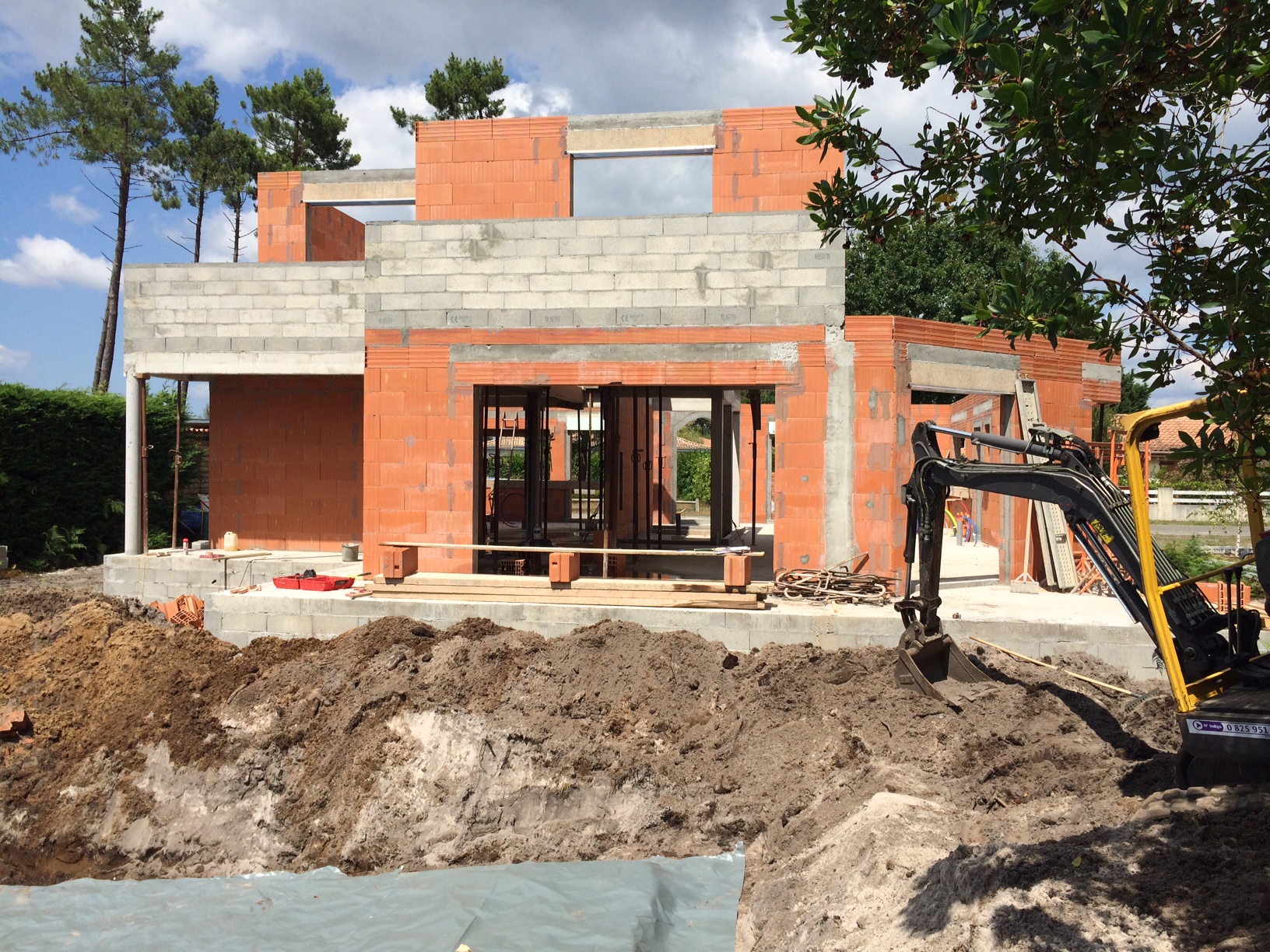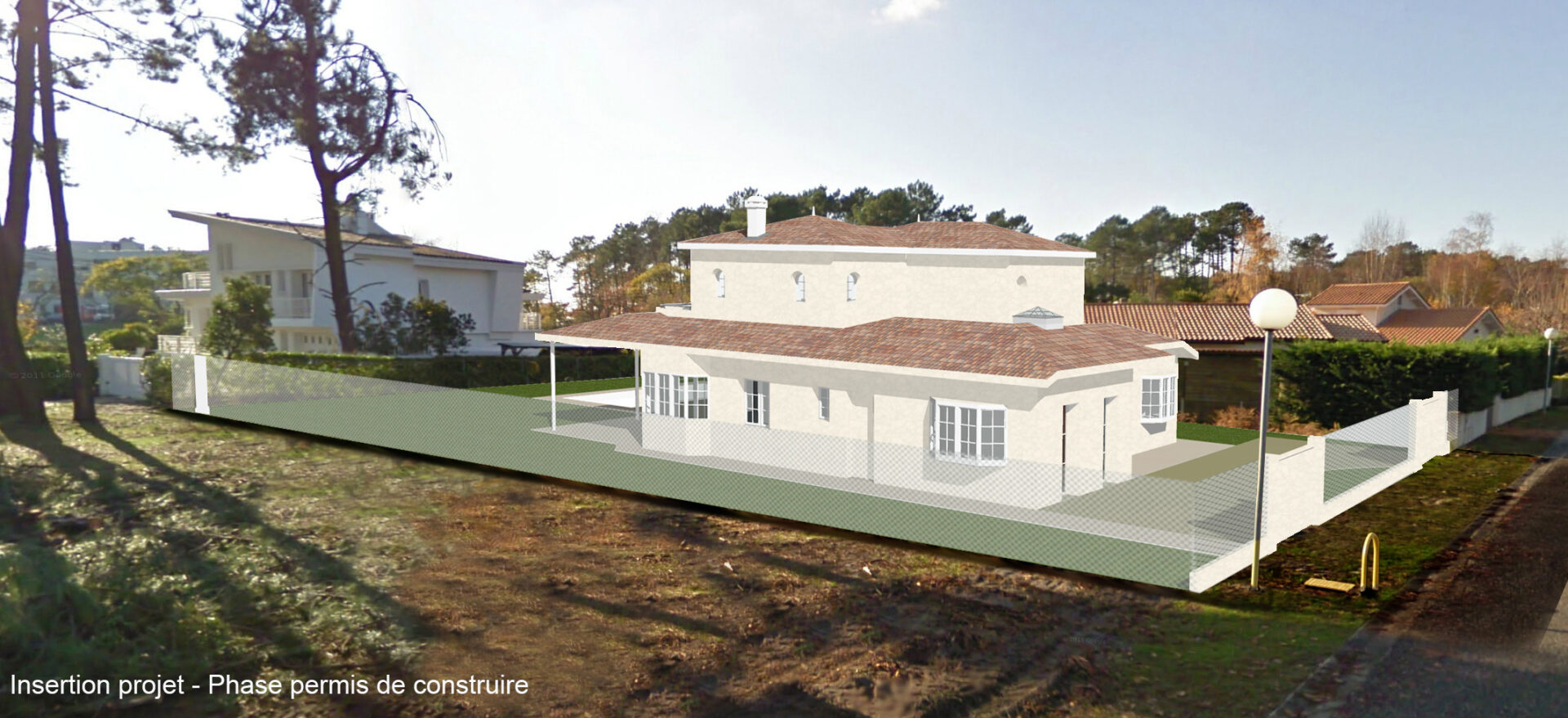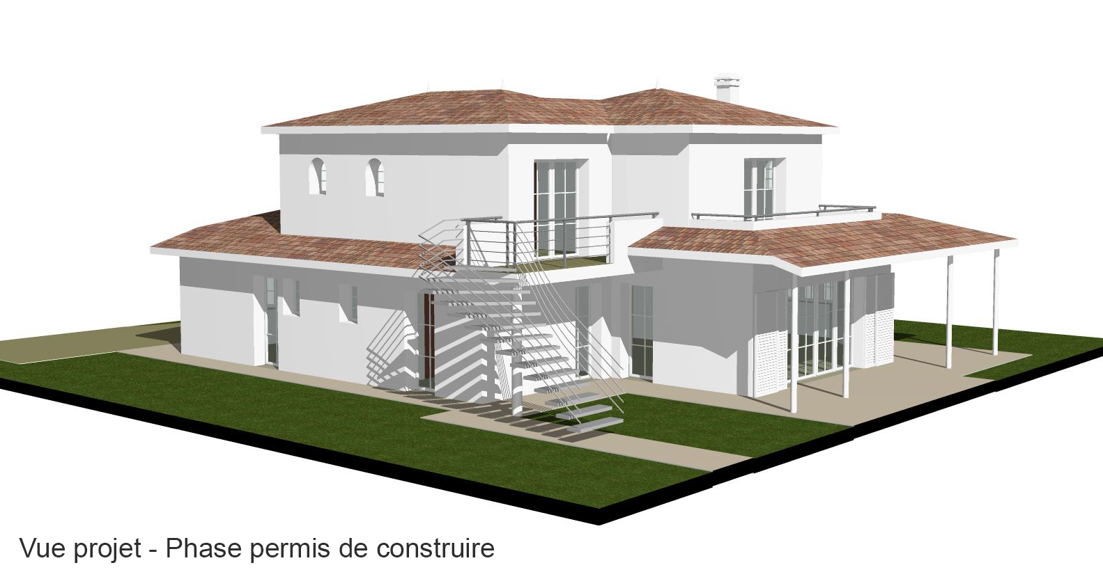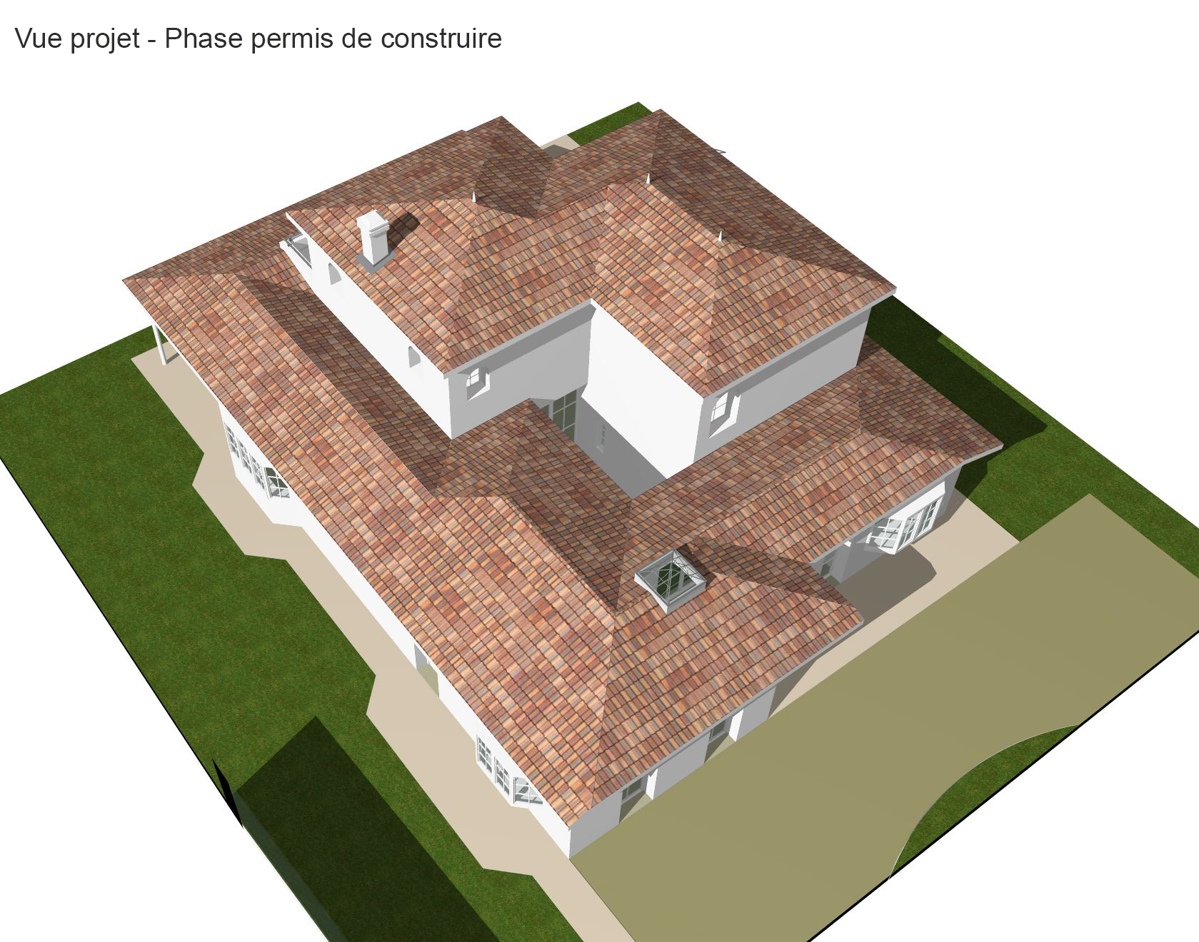 Descriptif : Terrain de forme plutôt carrée, l’habitation a une emprise bâtie qui s'adapte a la parcelle et cherche à répondre aux besoins des propriétaires. La forme carrée, impliquait une construction assez dense. Pour y répondre, l’espace central a été traité en un patio à ciel ouvert.