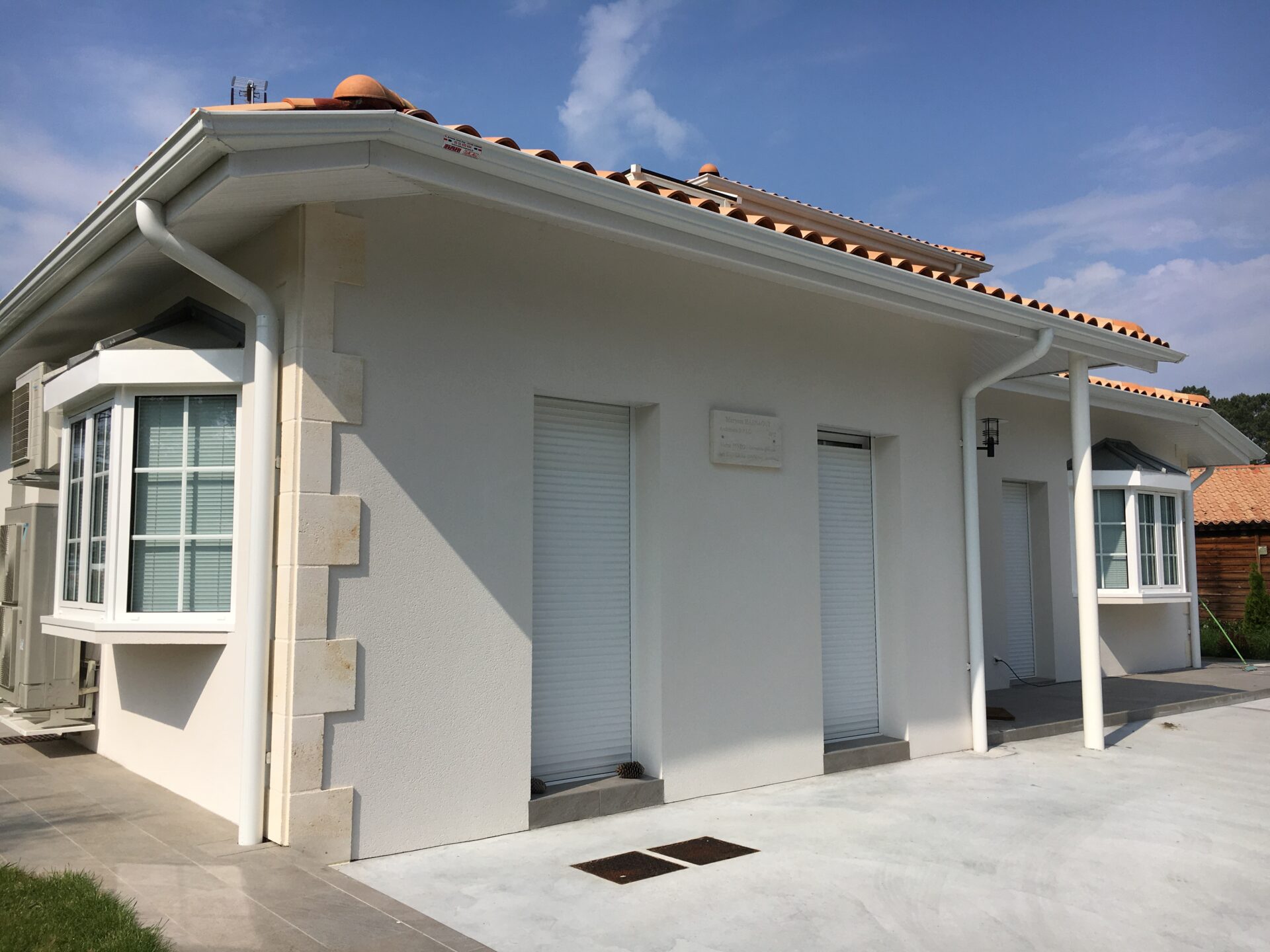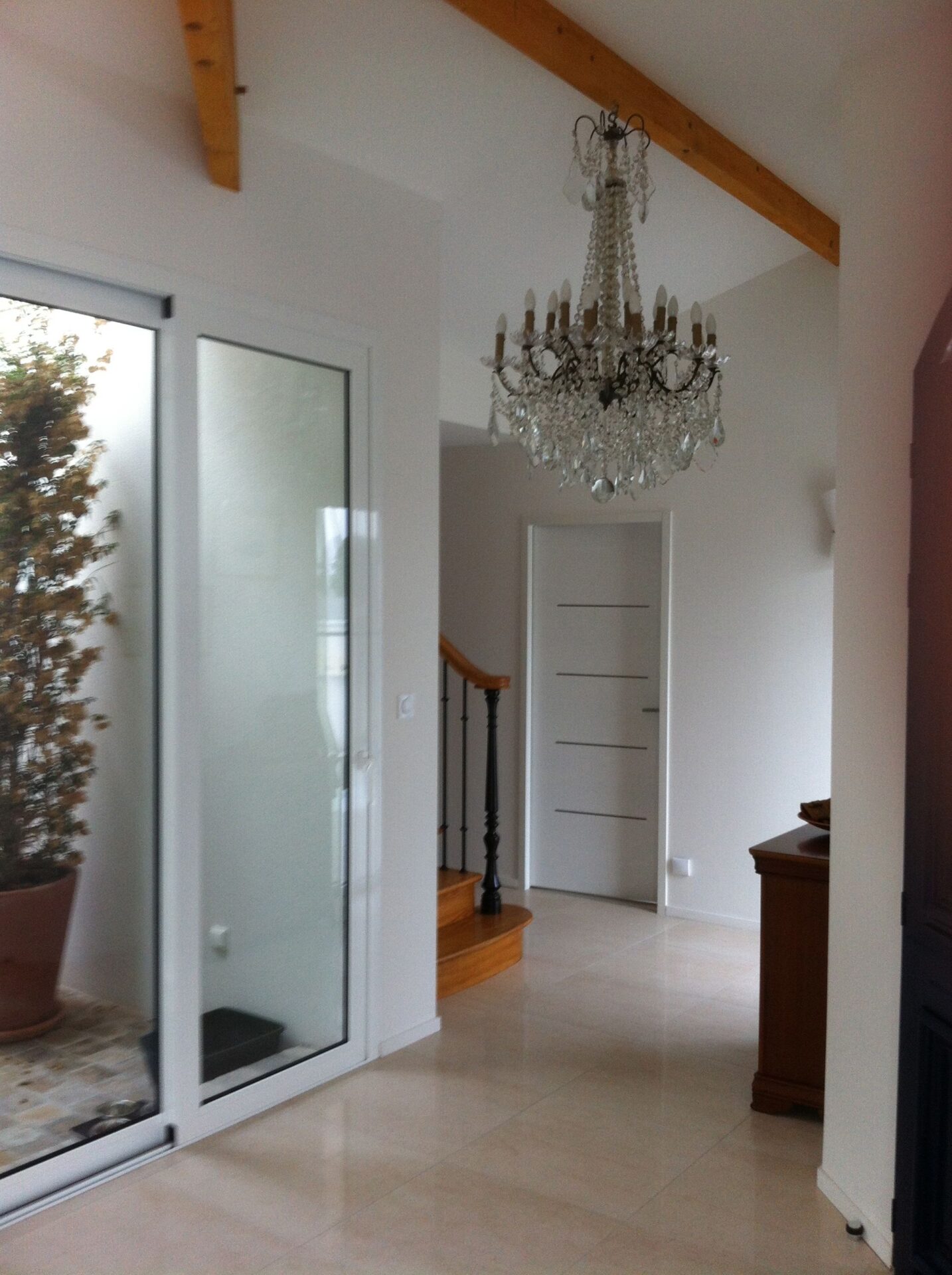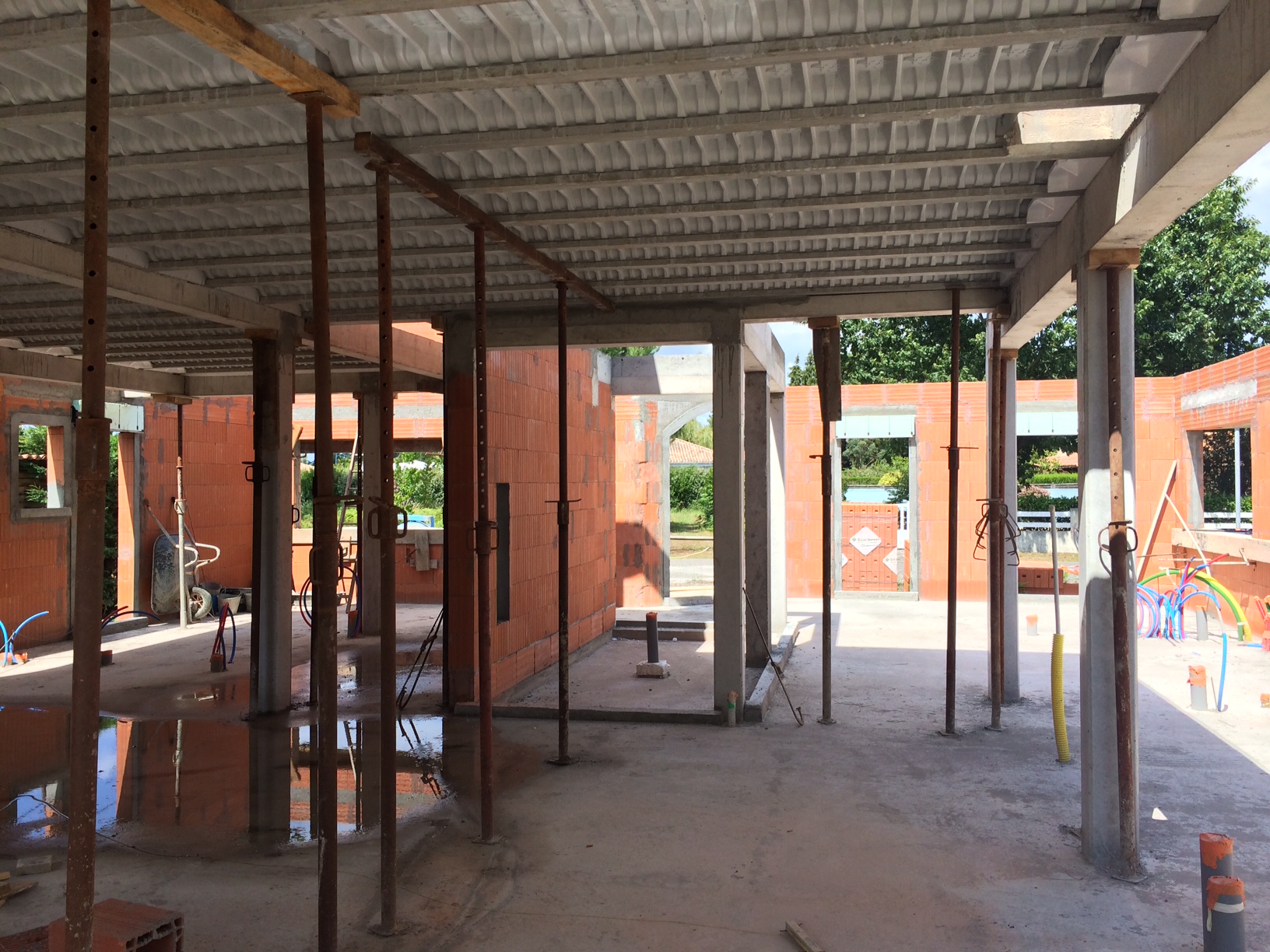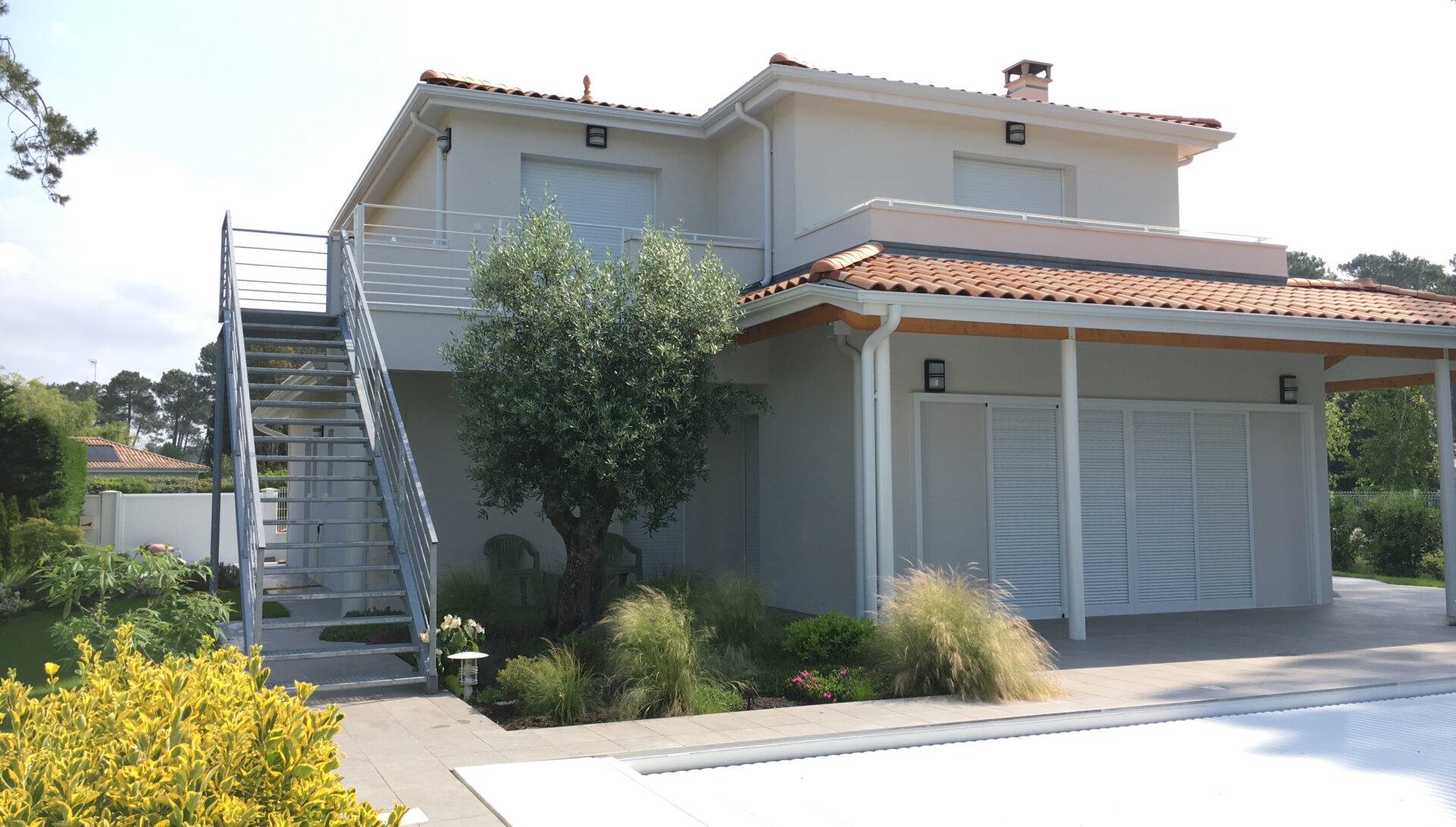 Descriptif : Terrain de forme plutôt carrée, l’habitation a une emprise bâtie qui s'adapte a la parcelle et cherche à répondre aux besoins des propriétaires. La forme carrée, impliquait une construction assez dense. Pour y répondre, l’espace central a été traité en un patio à ciel ouvert.