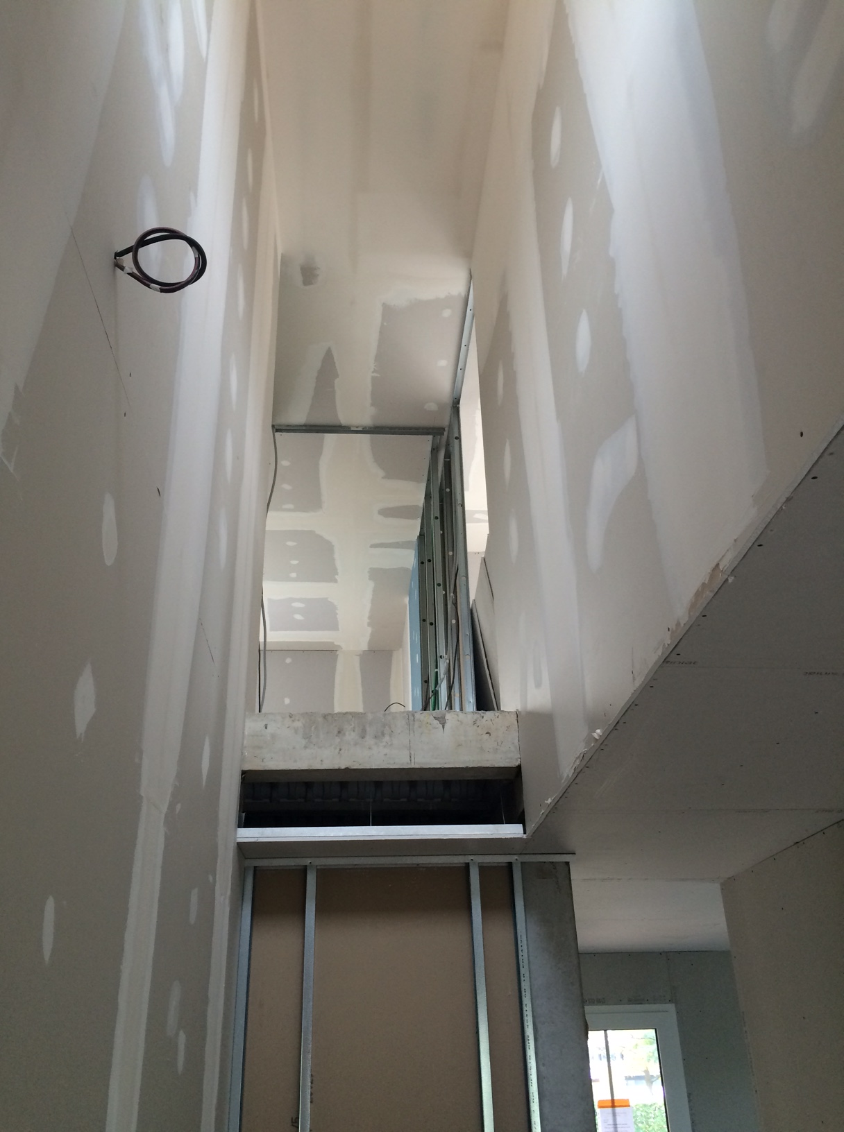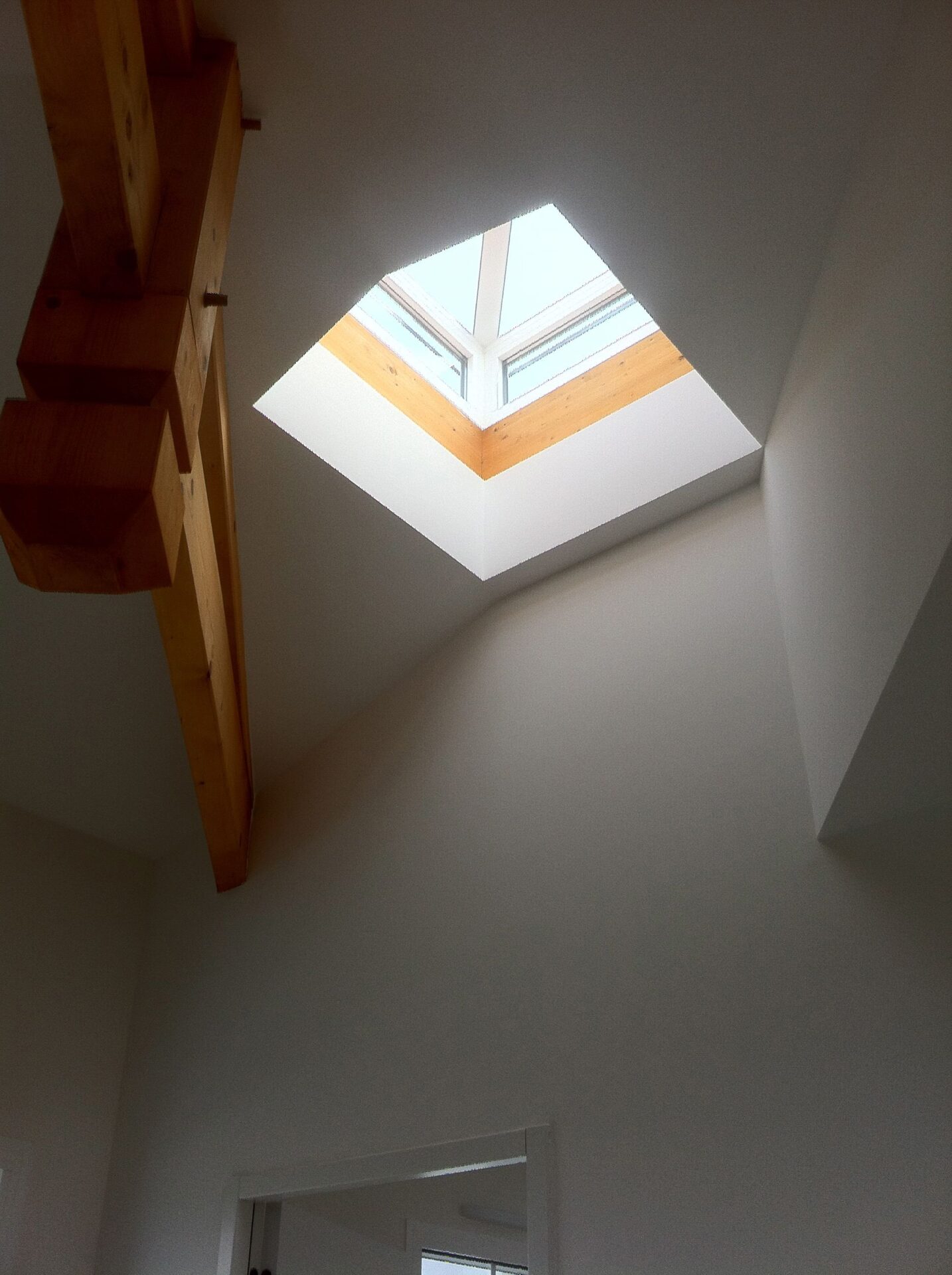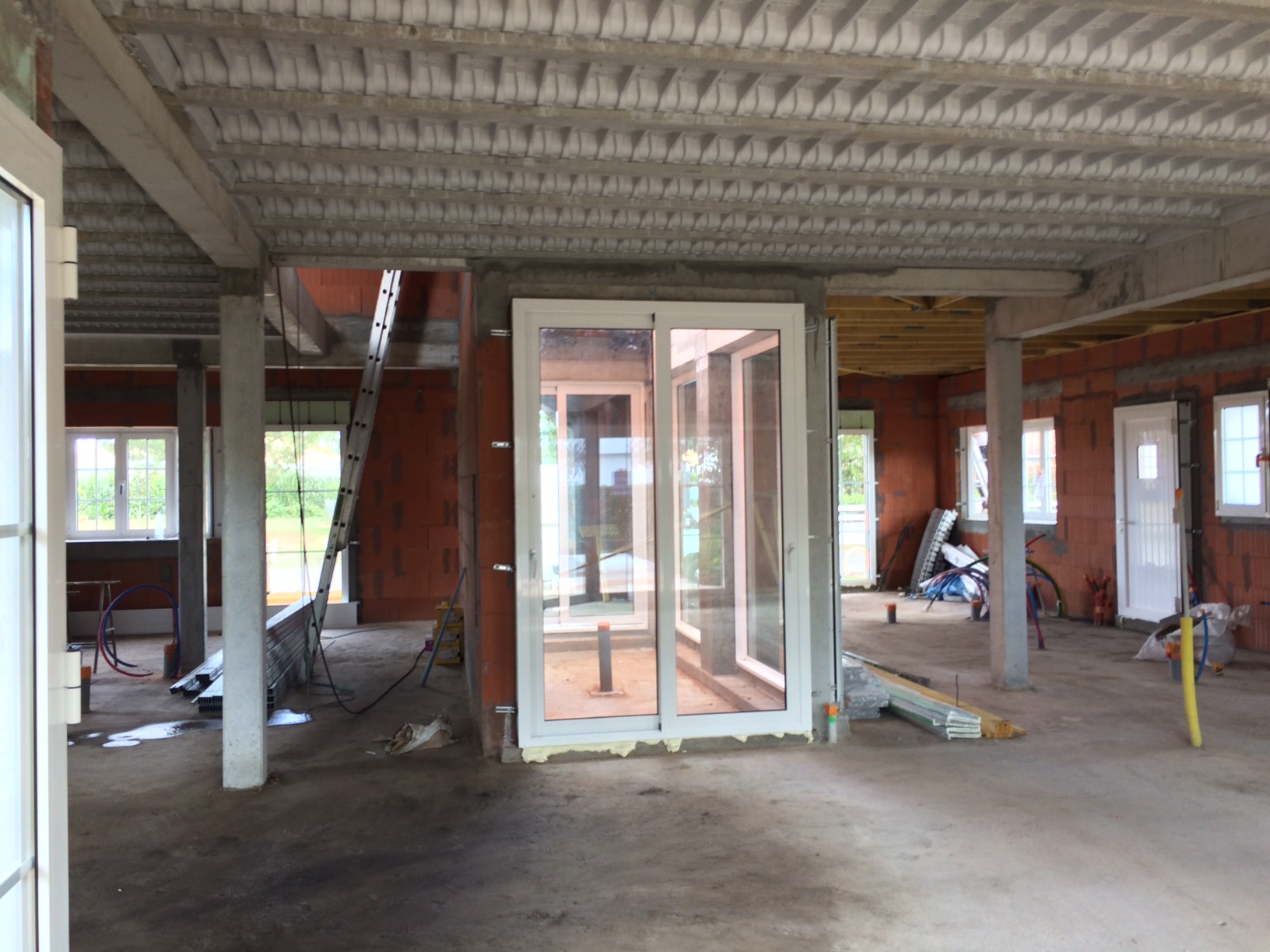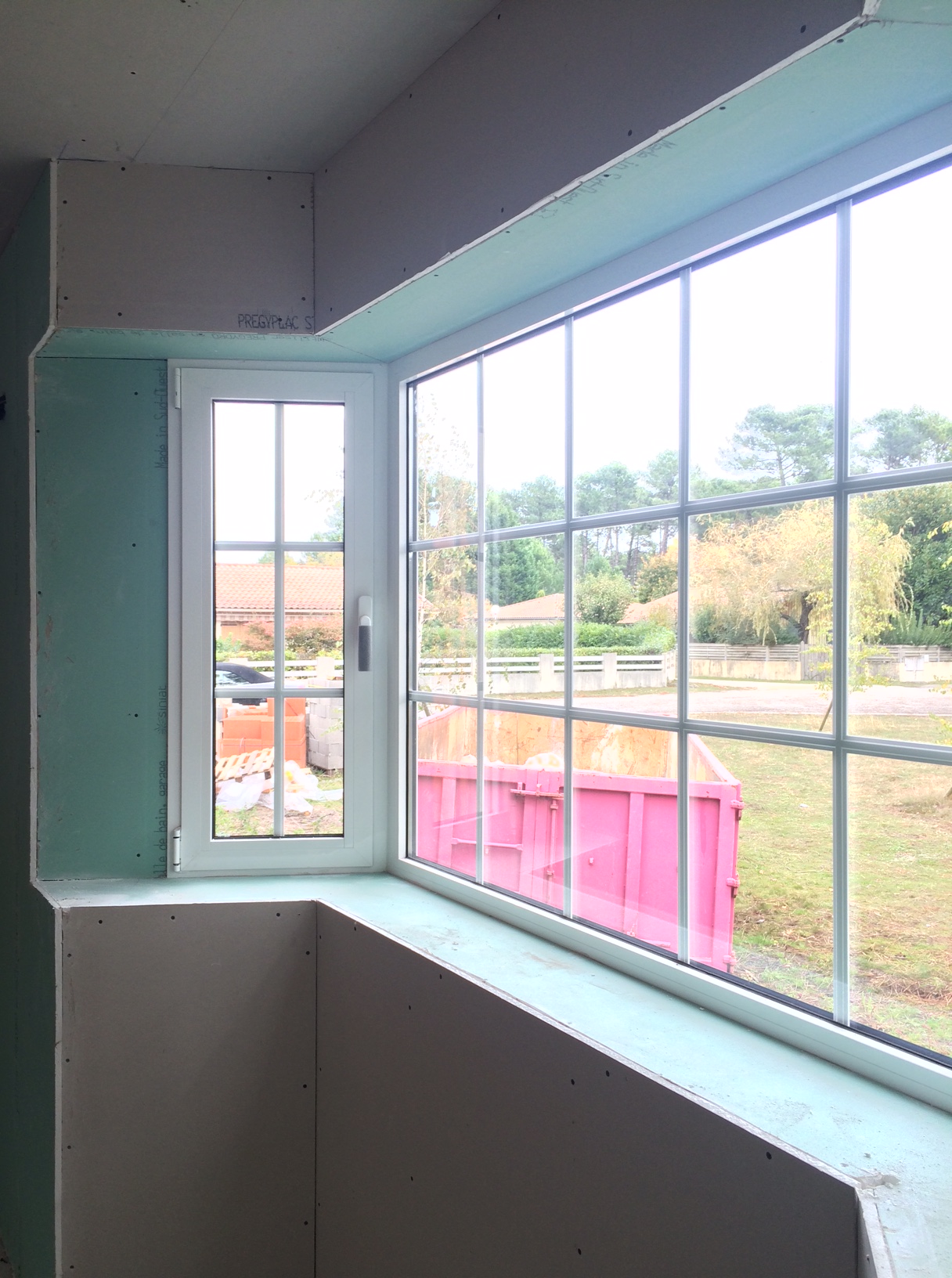 Descriptif : Terrain de forme plutôt carrée, l’habitation a une emprise bâtie qui s'adapte a la parcelle et cherche à répondre aux besoins des propriétaires. La forme carrée, impliquait une construction assez dense. Pour y répondre, l’espace central a été traité en un patio à ciel ouvert.