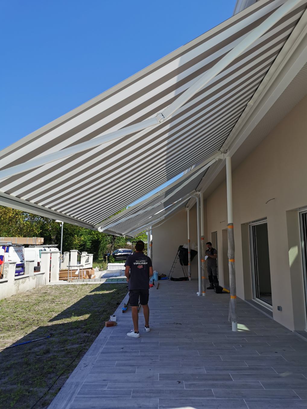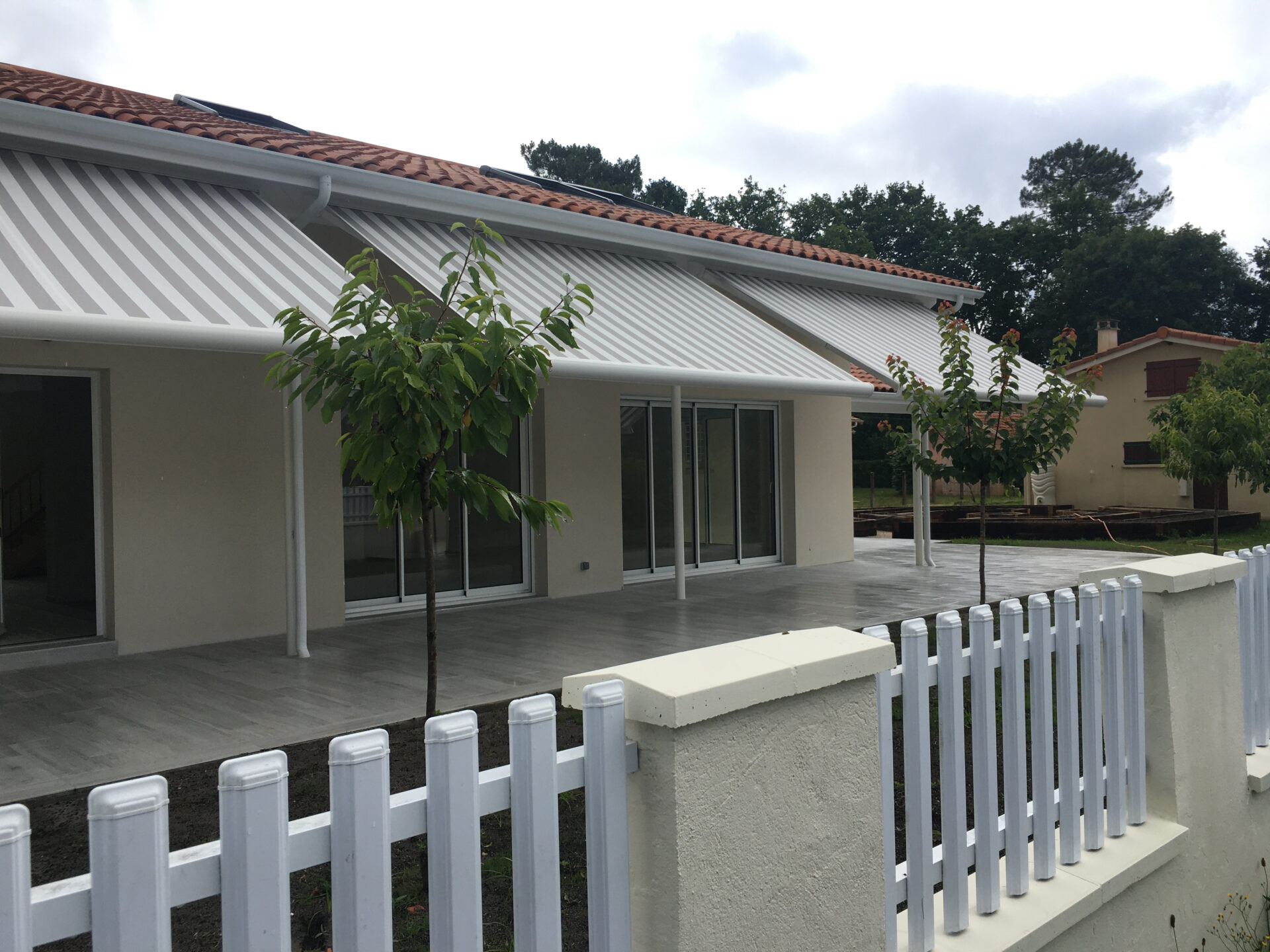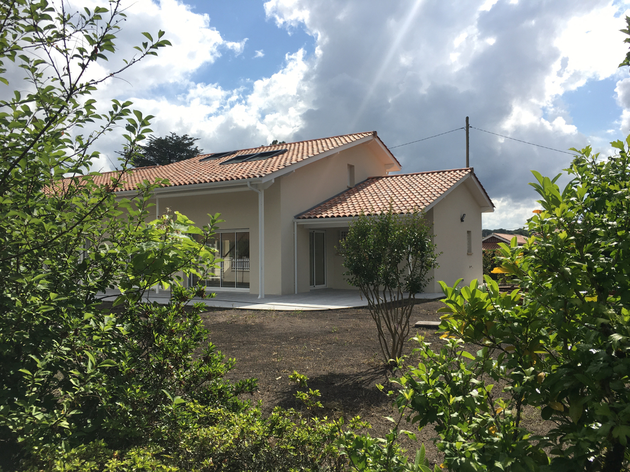 Un traitement paysager et des avancées de toitures sous forme de pergolas ont permis la gestion de l’ensoleillement au Sud et de la fraicheur au Nord.