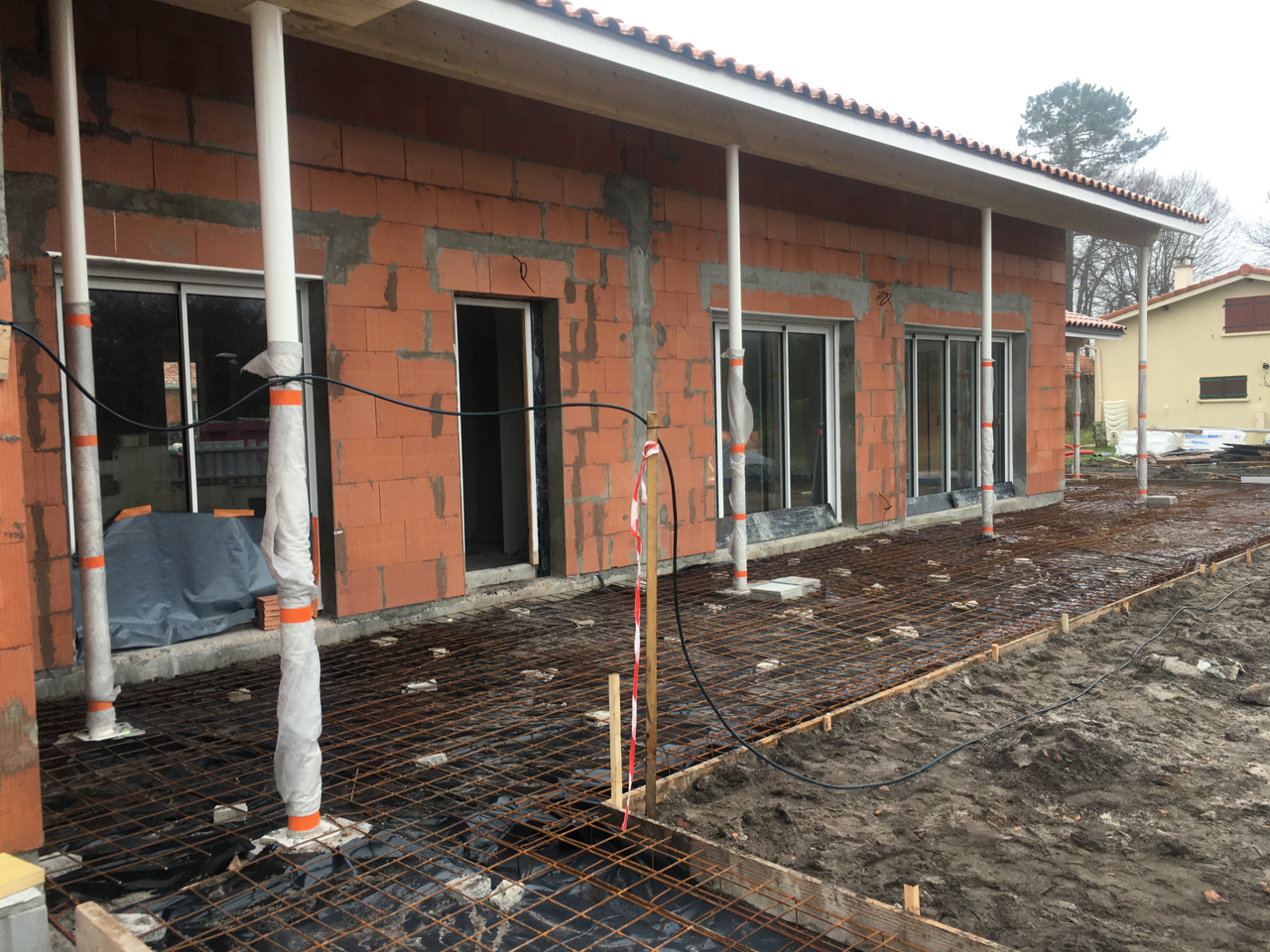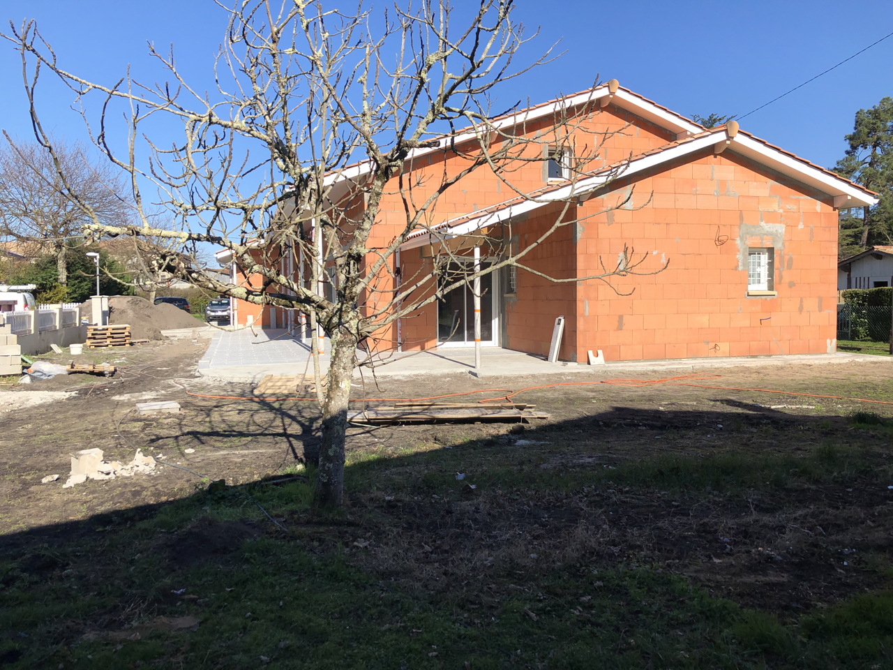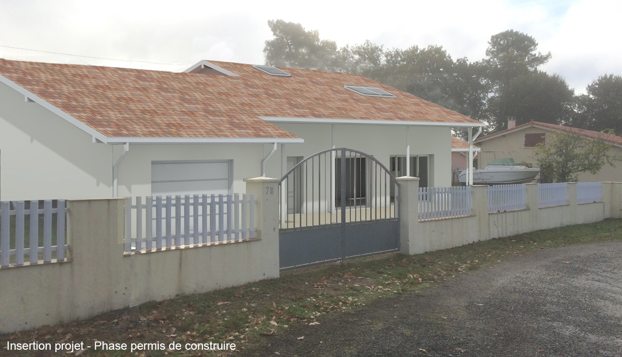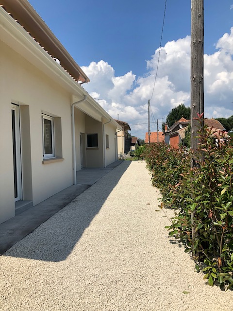 Descriptif : Sur une parcelle longitudinale, la construction s’est vue s’implanter en retrait le long de la voie d’accès.