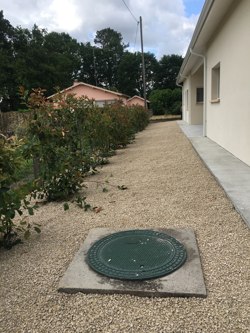 Un aménagement extérieur a été traité pour intégrer une cuve enterrée d’eau pluviale qui permet l’arrosage et l’adduction en eau non potable des sanitaires.