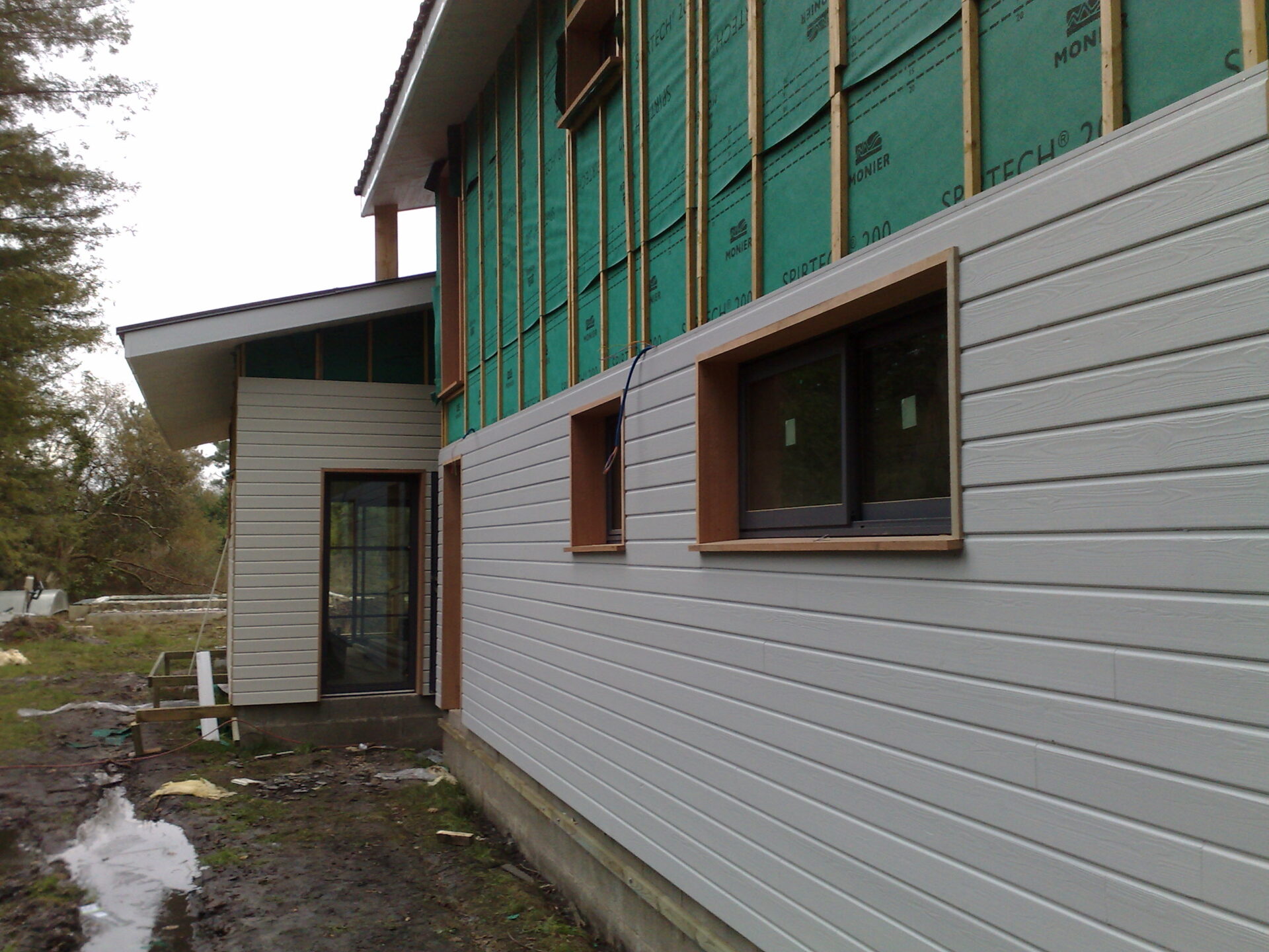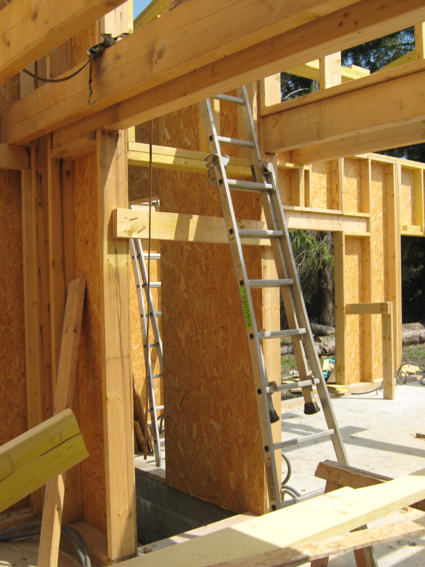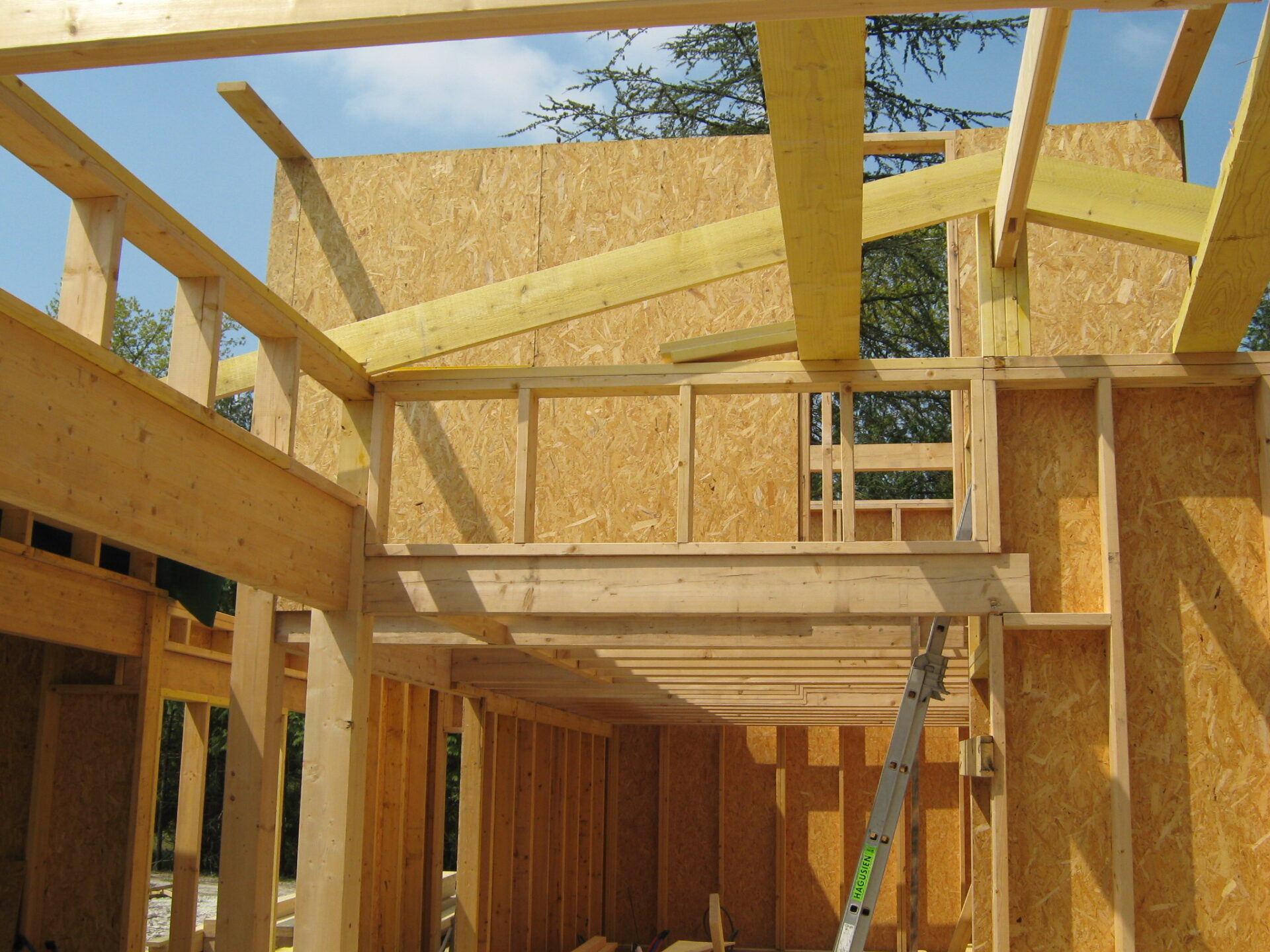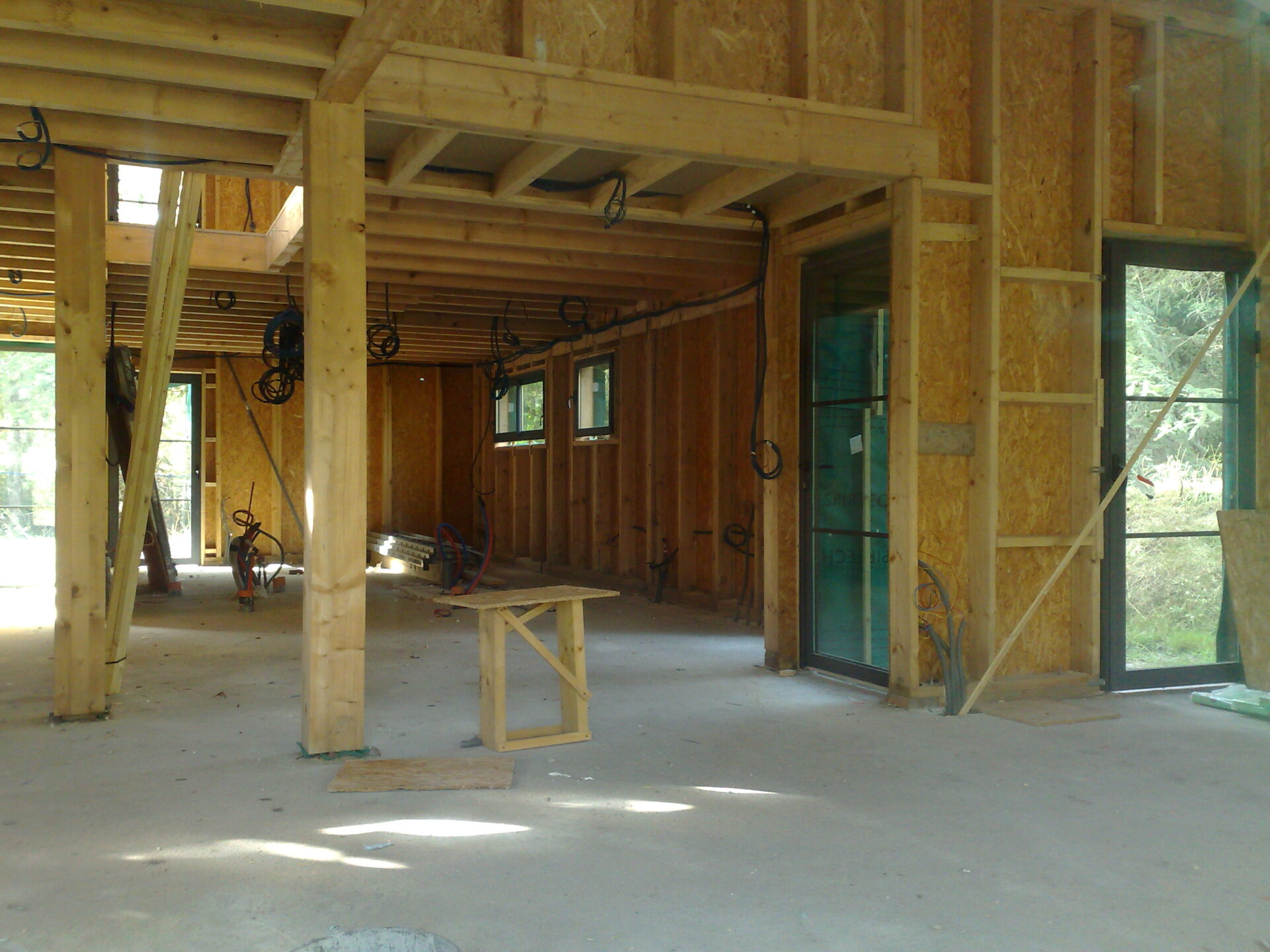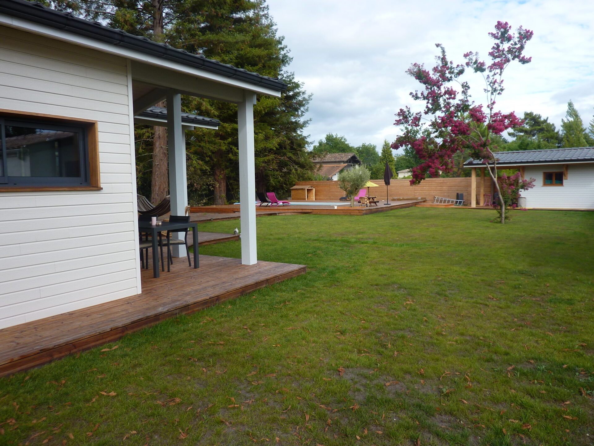 Descriptif : L’habitation a été construite en structure bois dans son ensemble. Elle s’étend en rez-de-chaussée et étage, le projet a été dessiné dans une volonté de distinction volumétrique des espaces, en intérieur et depuis l’extérieur.