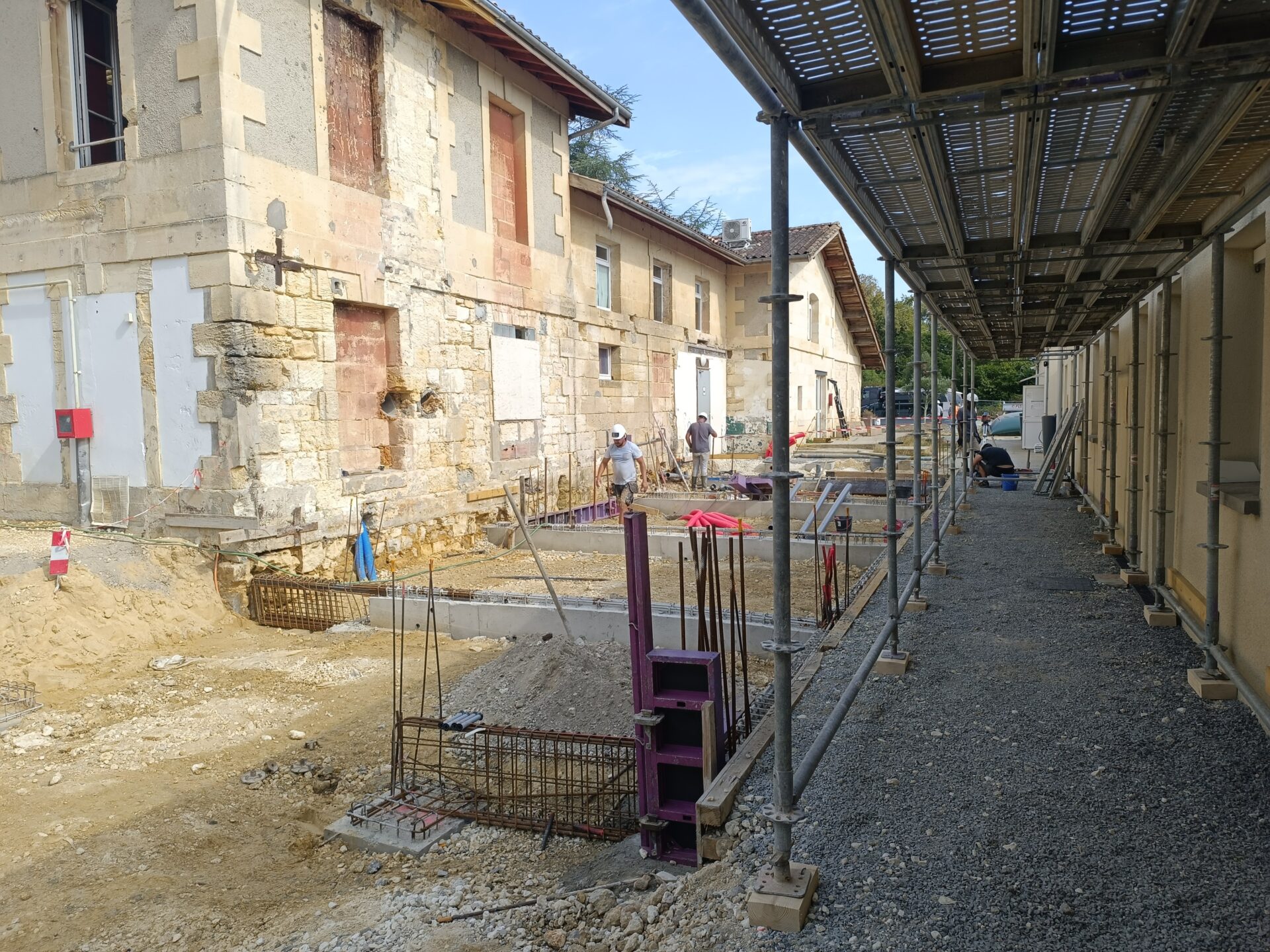 Le chantier se déroule en milieu occupé et une coordination très minutieuse devait répondre a cette cohabitation pour veiller à la protection des enfants et permettre un bon déroulé des travaux.