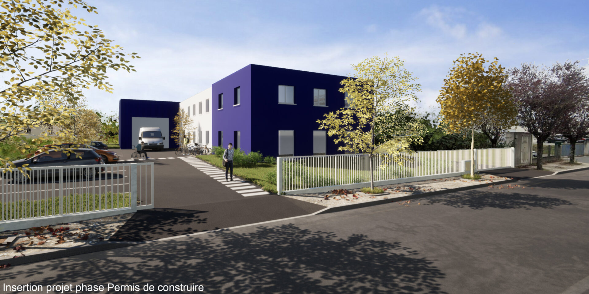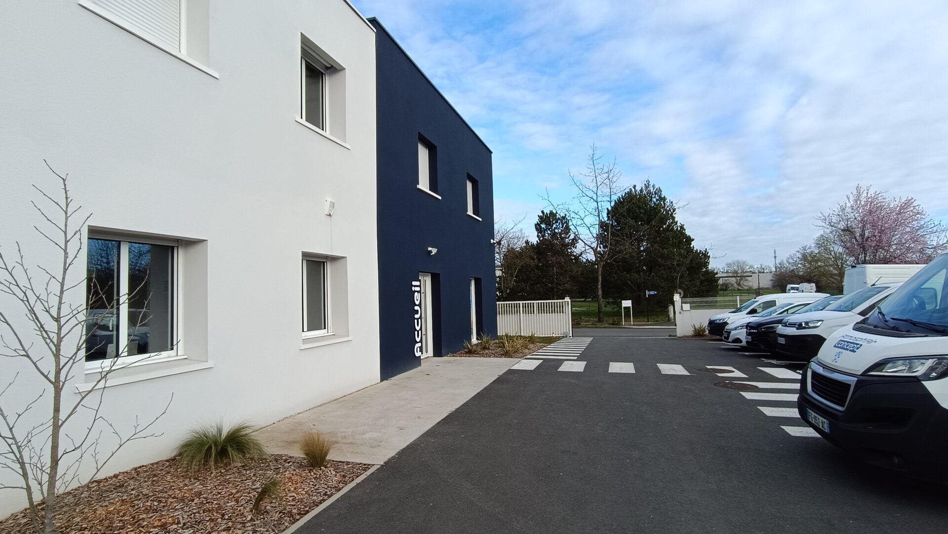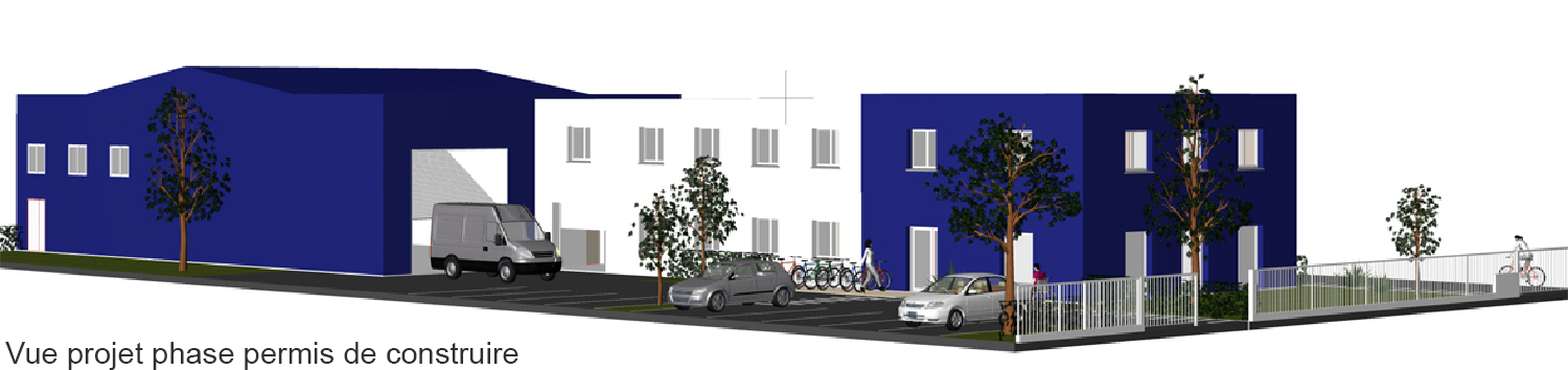 L’espace extérieur a été traité pour accueillir des espaces végétalisés, le stationnement public et privé et pour la manipulation des engins.