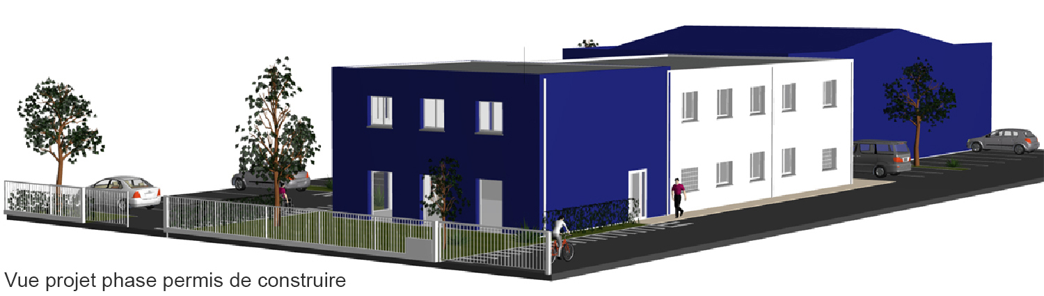 Descriptif : Un bâtiment existant en rez-de-chaussée et étage a été réaménagé pour accueillir les nouvelles fonctions des professionnels.
