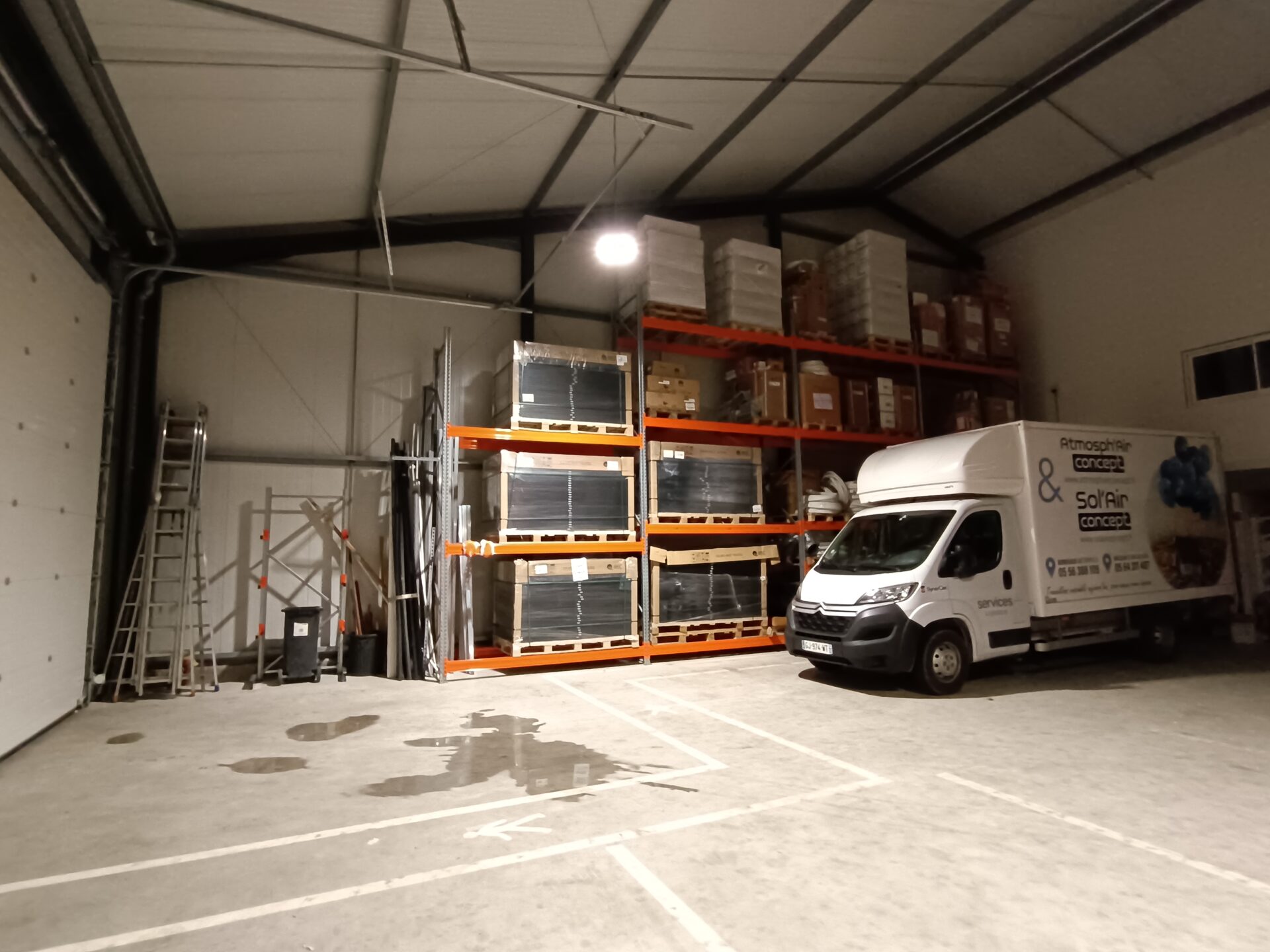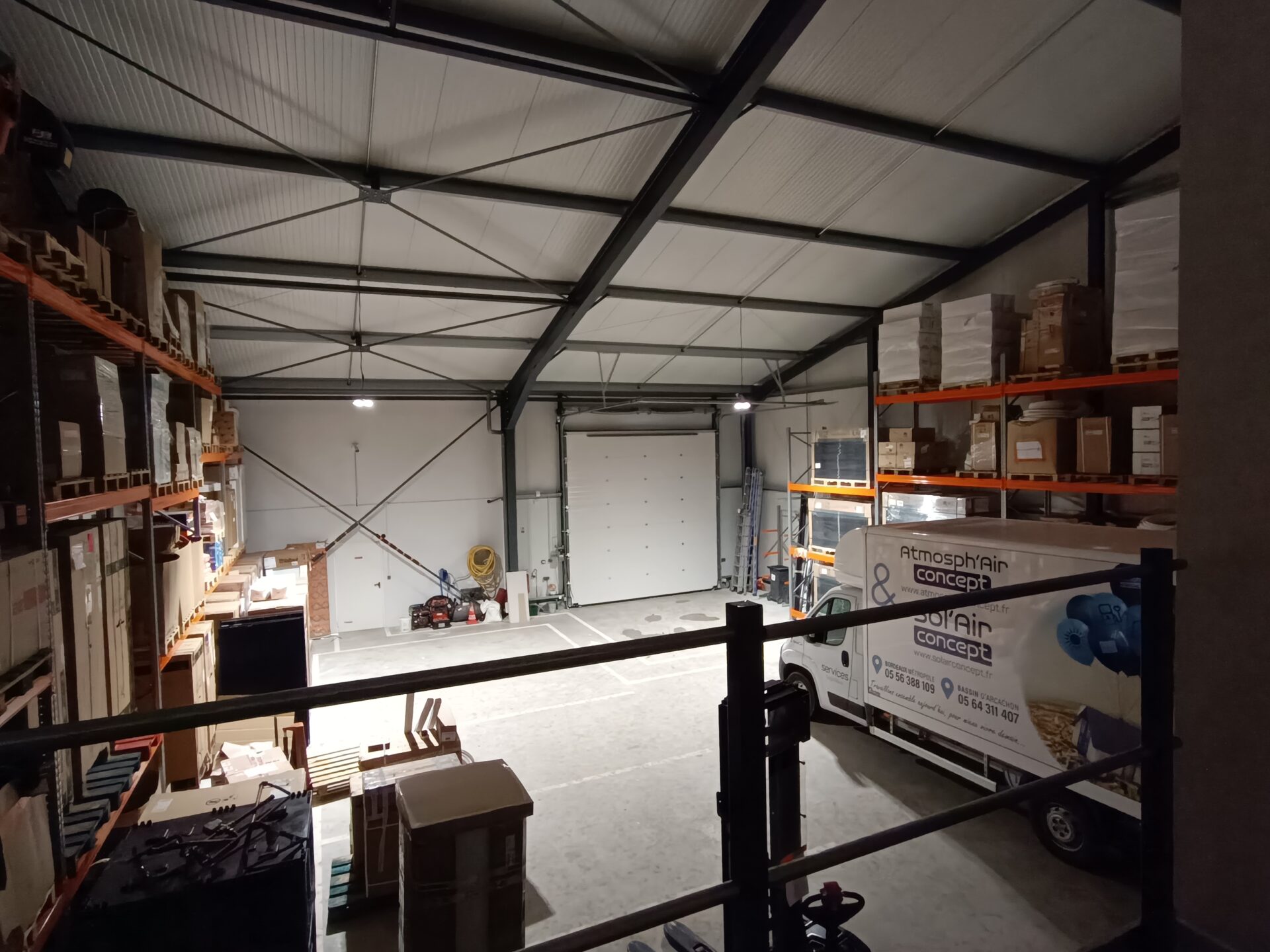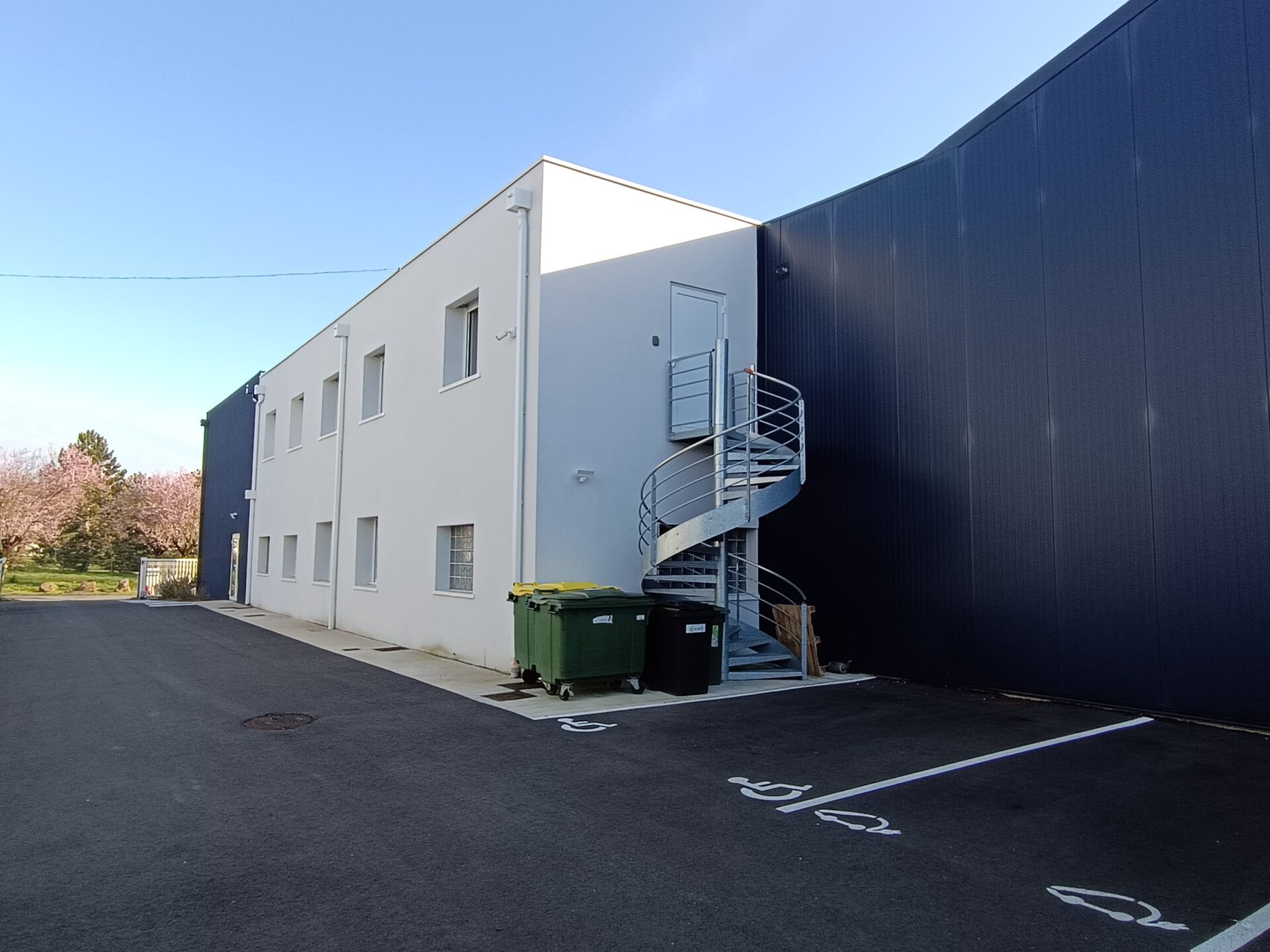 Une liaison a été créée pour l’entreprise au rez-de-chaussée avec le hangar attenant qui a été construit pour les besoins de la profession en stockages et manutentions.