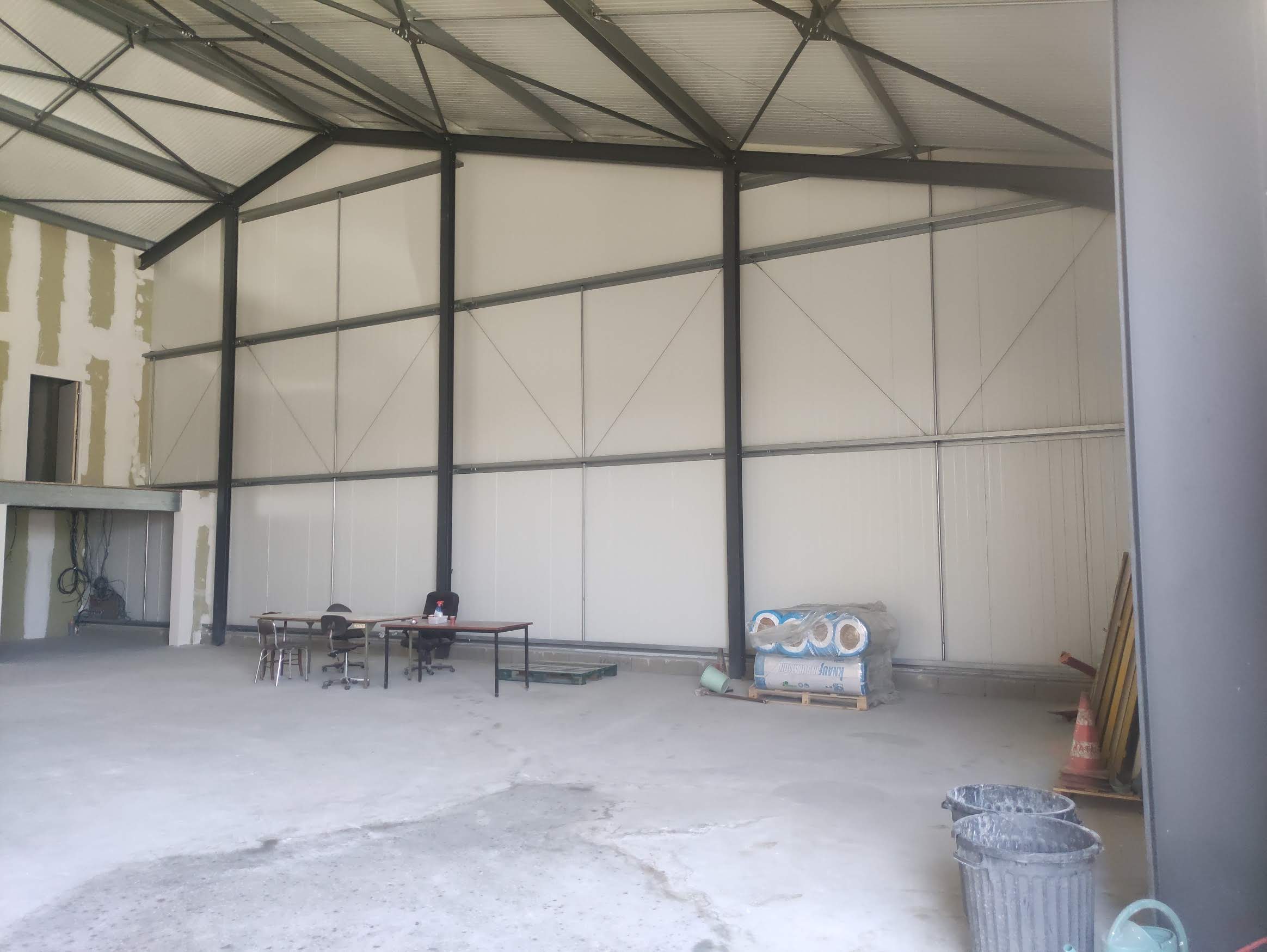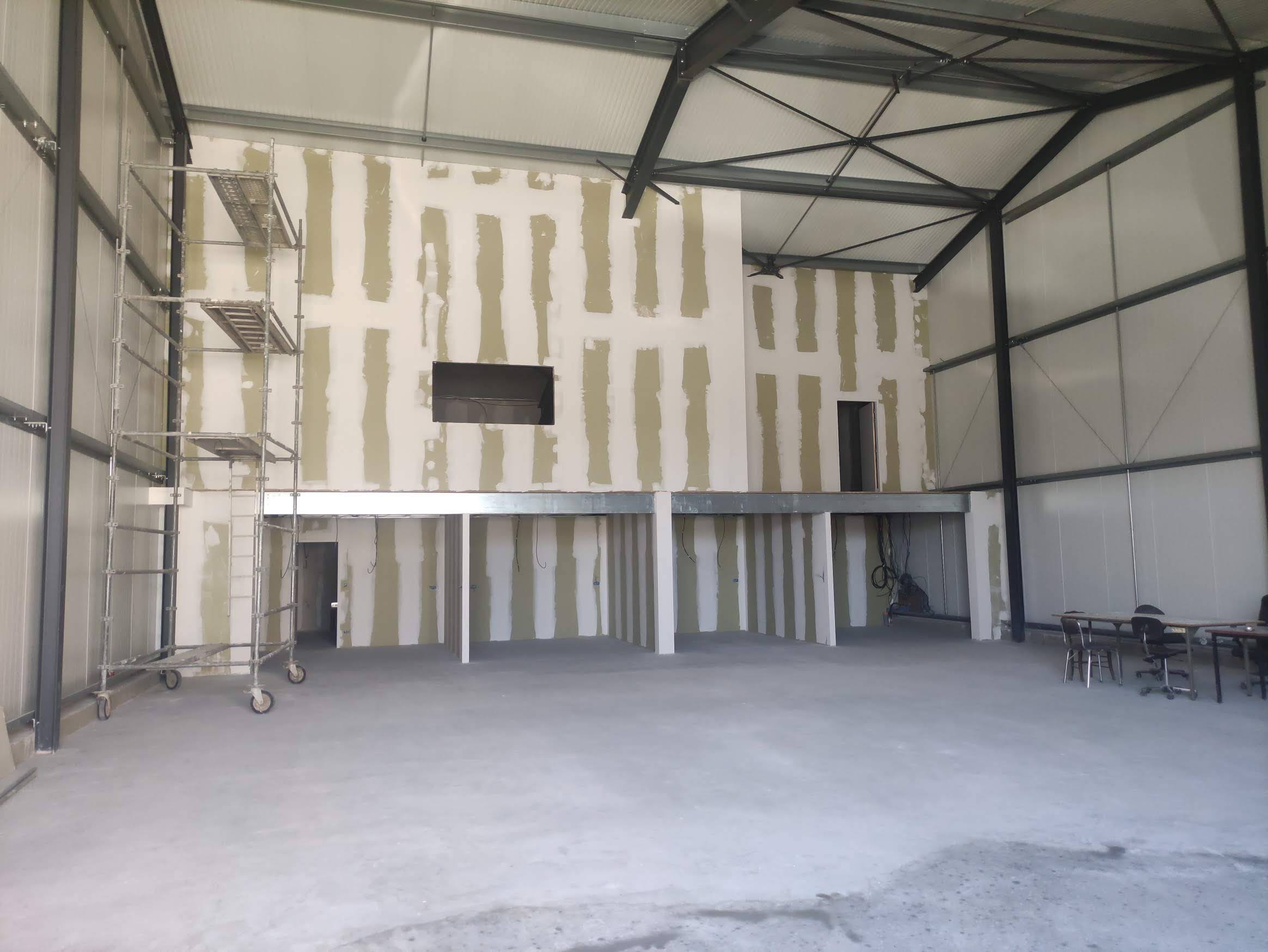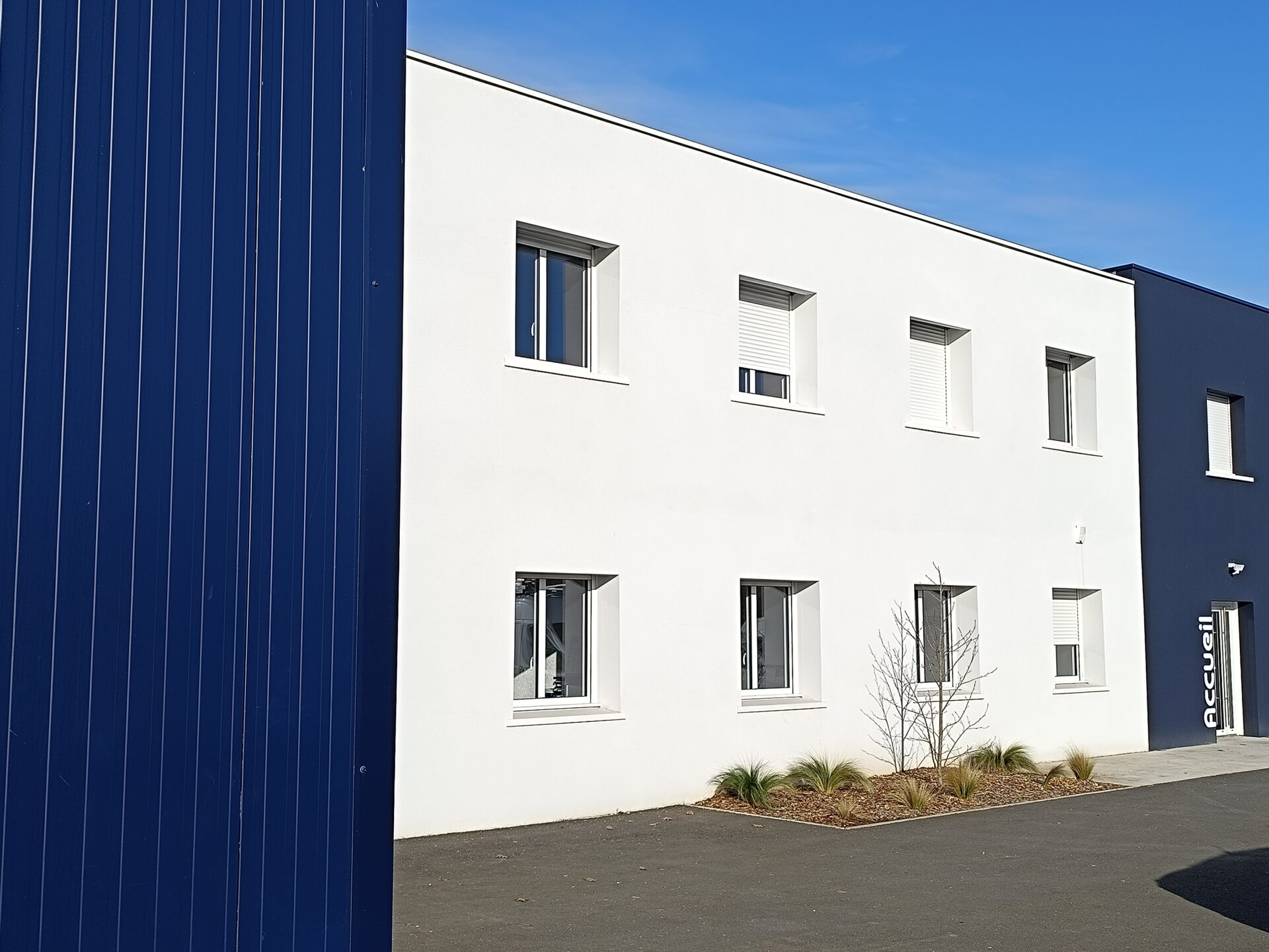 Une liaison a été créée pour l’entreprise au rez-de-chaussée avec le hangar attenant qui a été construit pour les besoins de la profession en stockages et manutentions.