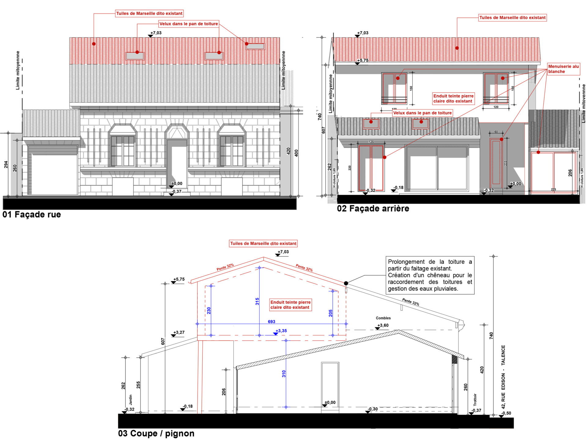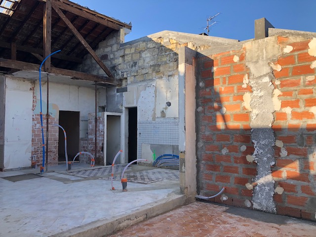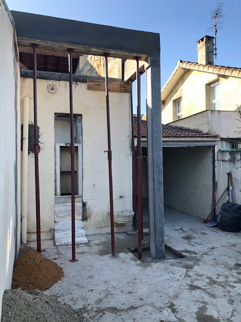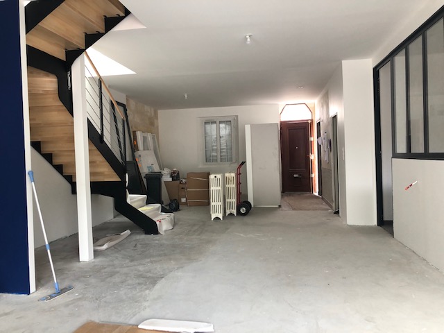 Descriptif : L’échoppe implantée sur la voie d’accès, s’étendait en rez-de-chaussée. Sa façade et toiture côté rue étaient protégées. Pour réaménager et agrandir la maison, le projet a été étudié sur l’arrière.