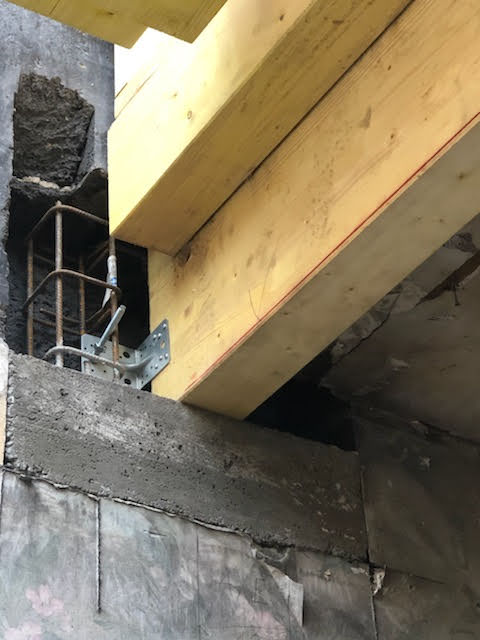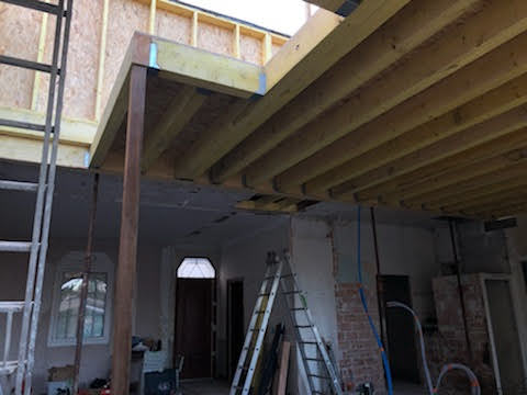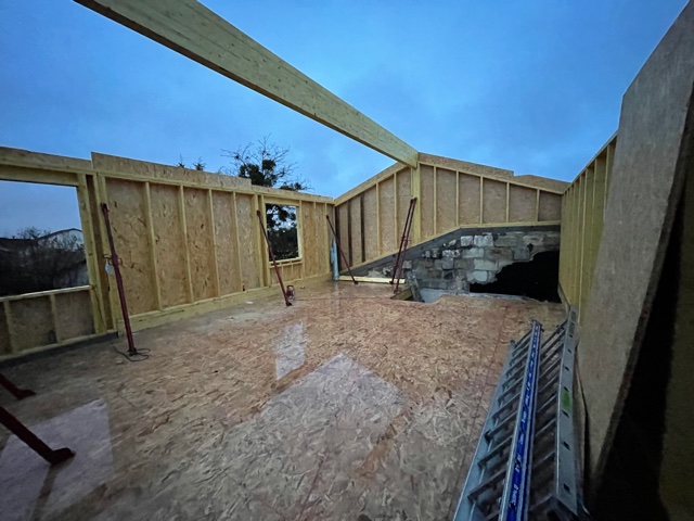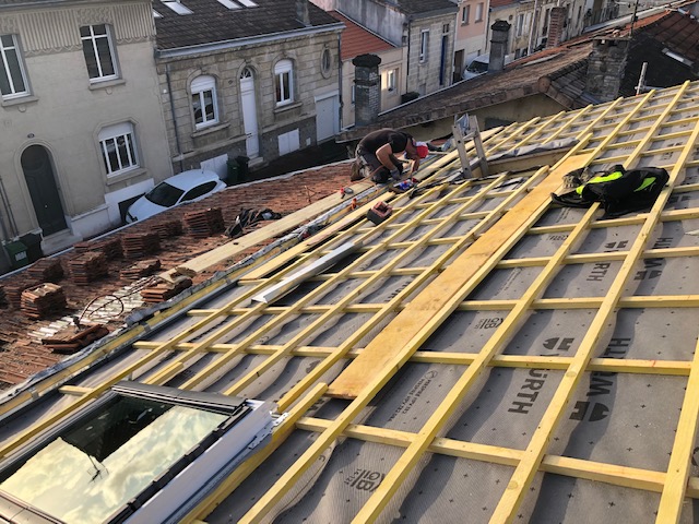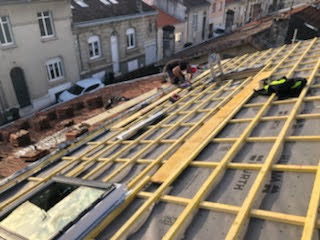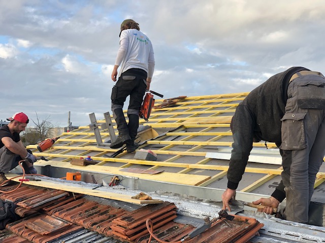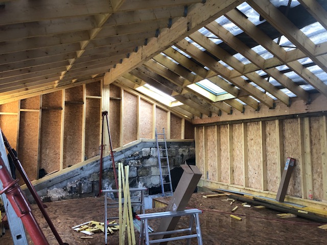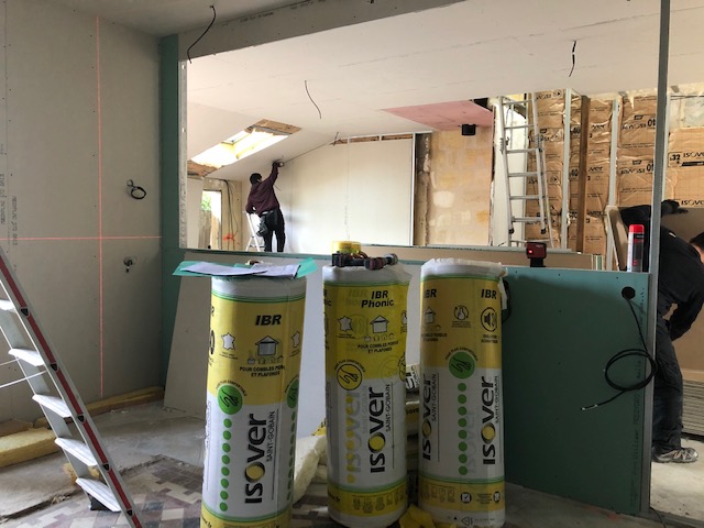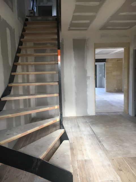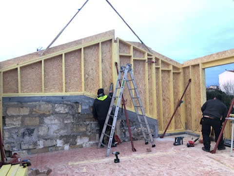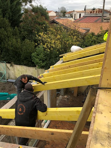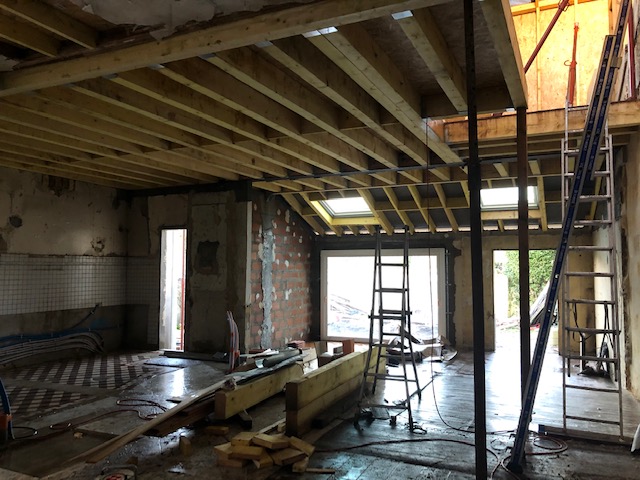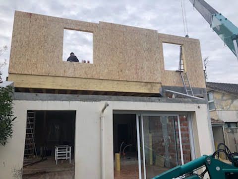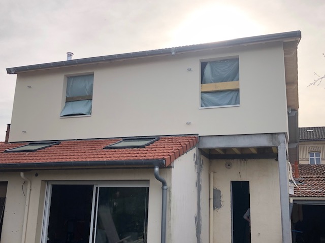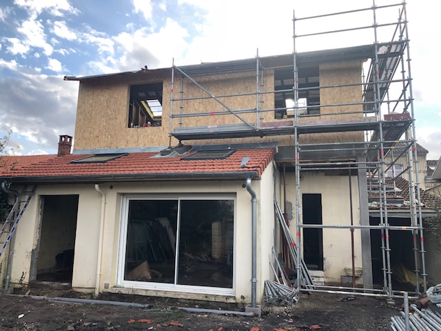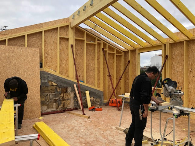 La toiture sur l’avant a été conservée et prolongée vers l’arrière jusqu’à trouver une hauteur intérieure qui permettait la création d’un étage. Cet étage a été rallongé sur l’arrière pour s’implanter en partie sur le rez-de-chaussée.