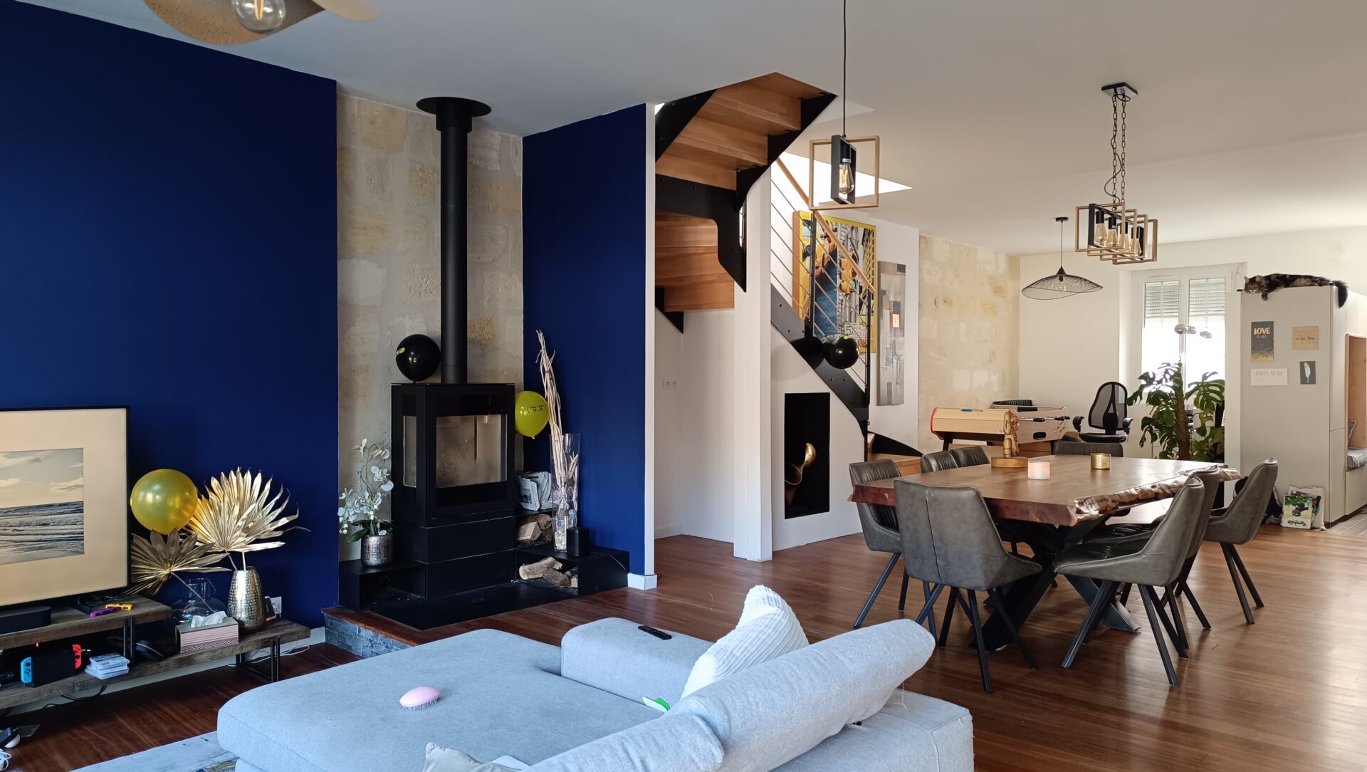 L’habitation a pu être réaménagée dans son ensemble en intégrant son agrandissement dans l’espace du nouveau volume intégré.