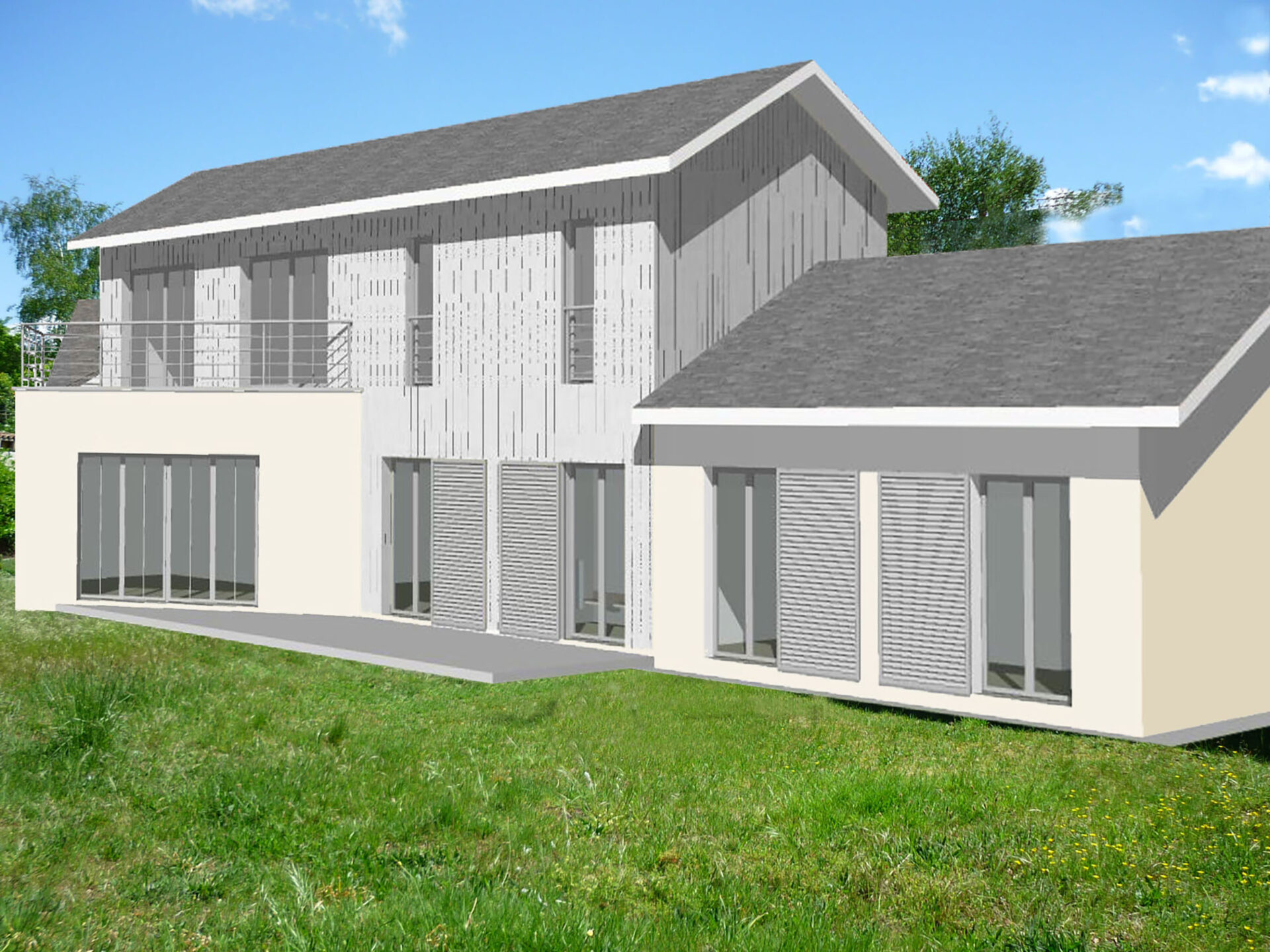 La base de la maison existante a été conservée, les extensions et la surélévation sont venues s’y greffer pour former un tout et découvrir une habitation totalement transformée.